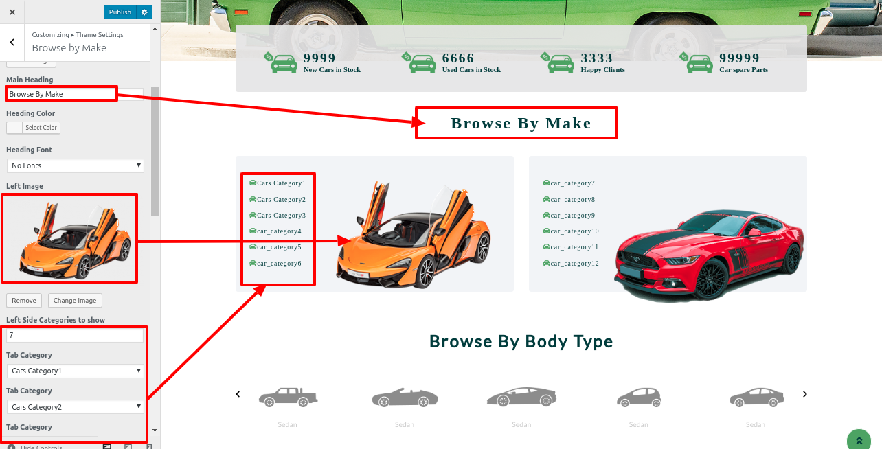 2. Go to Appearance >> Customize >> Theme Settings >> Browse by Make.