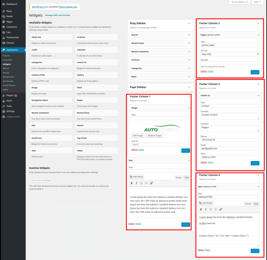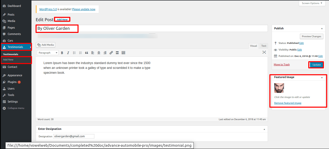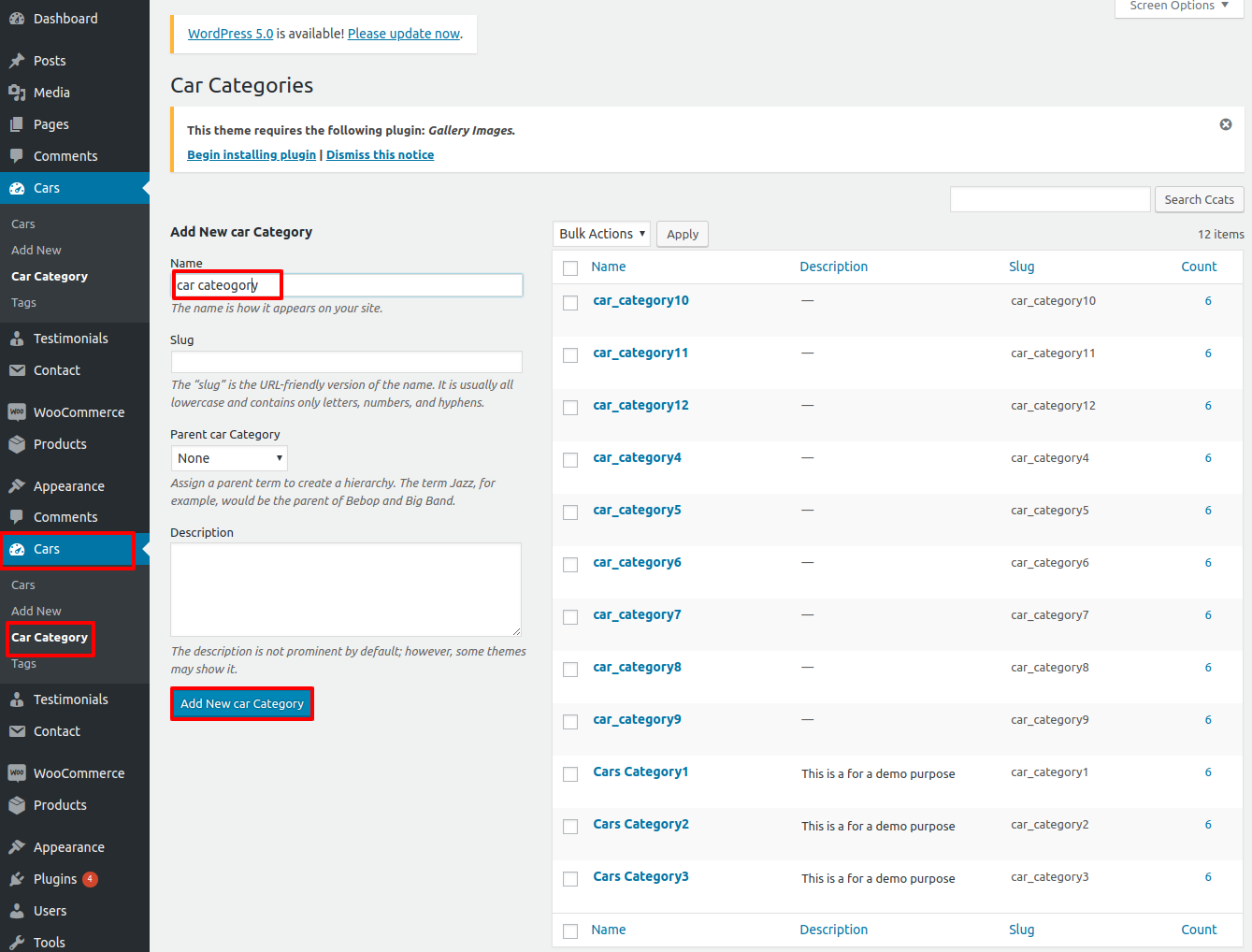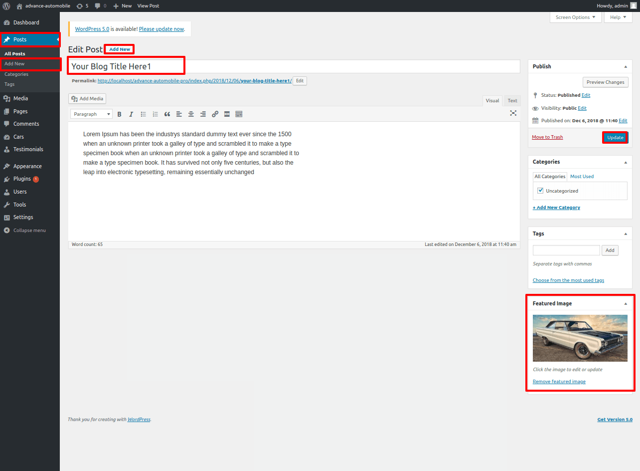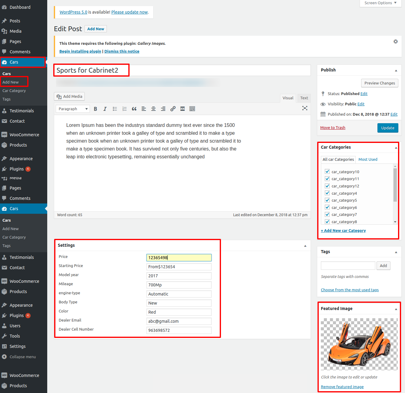 You must activate the advance-automobile-pro Posttype plugin for this section (for more information refer to plugin section).