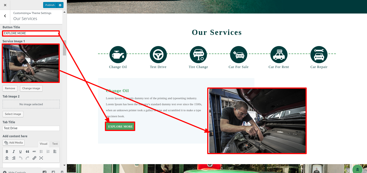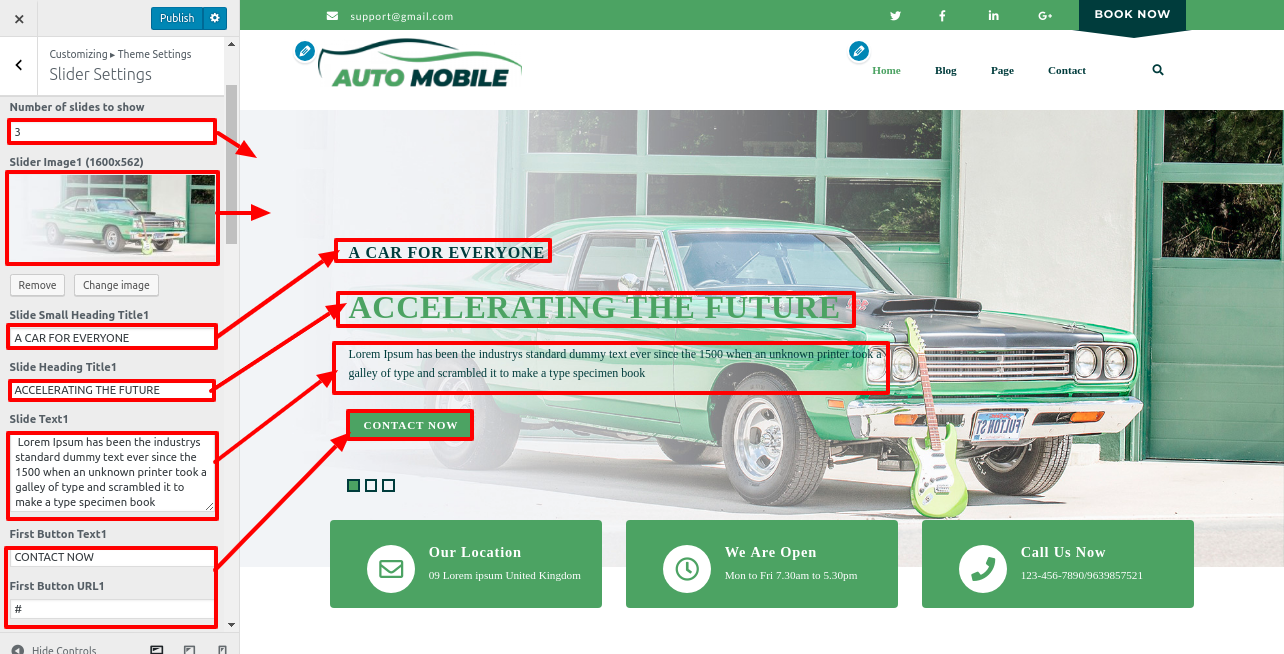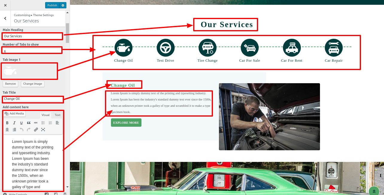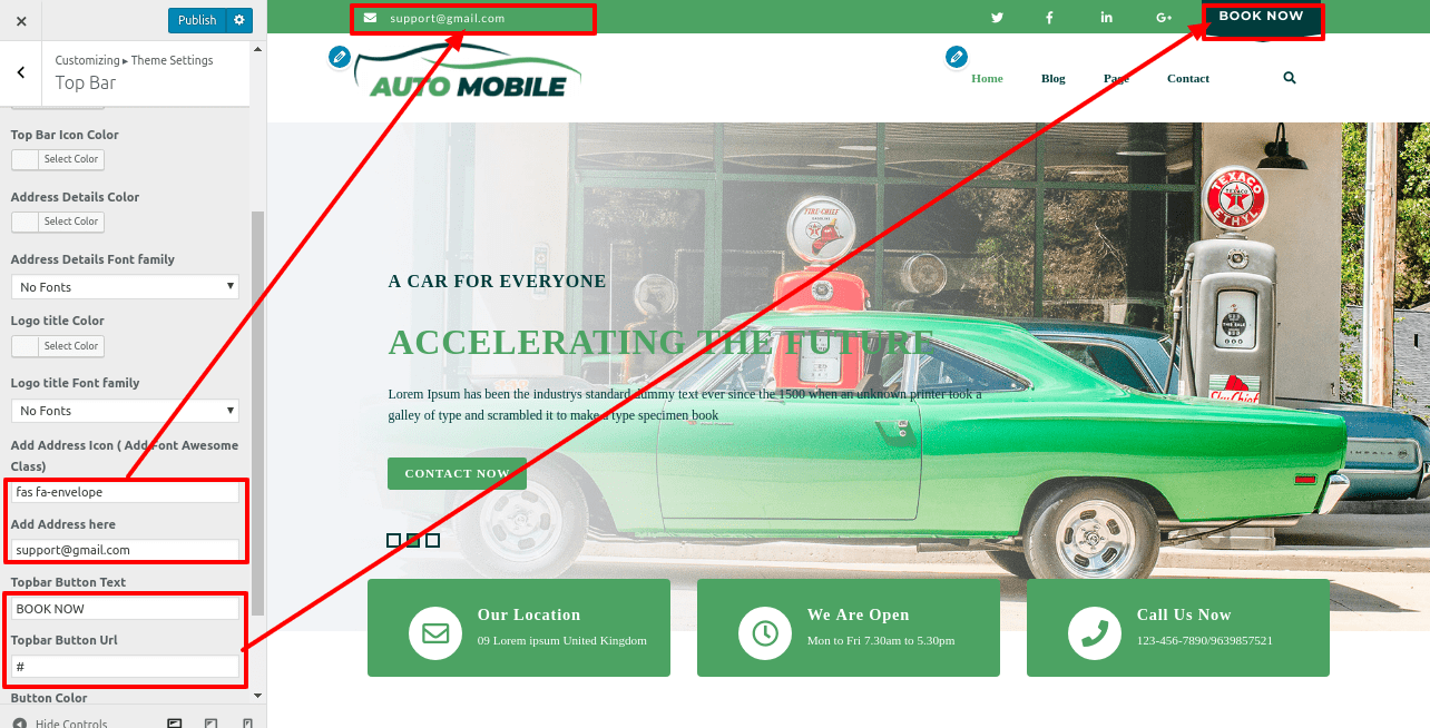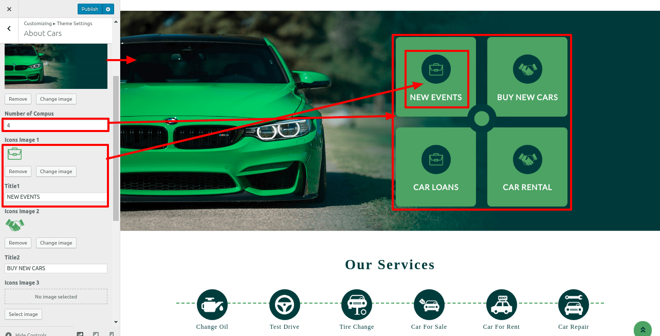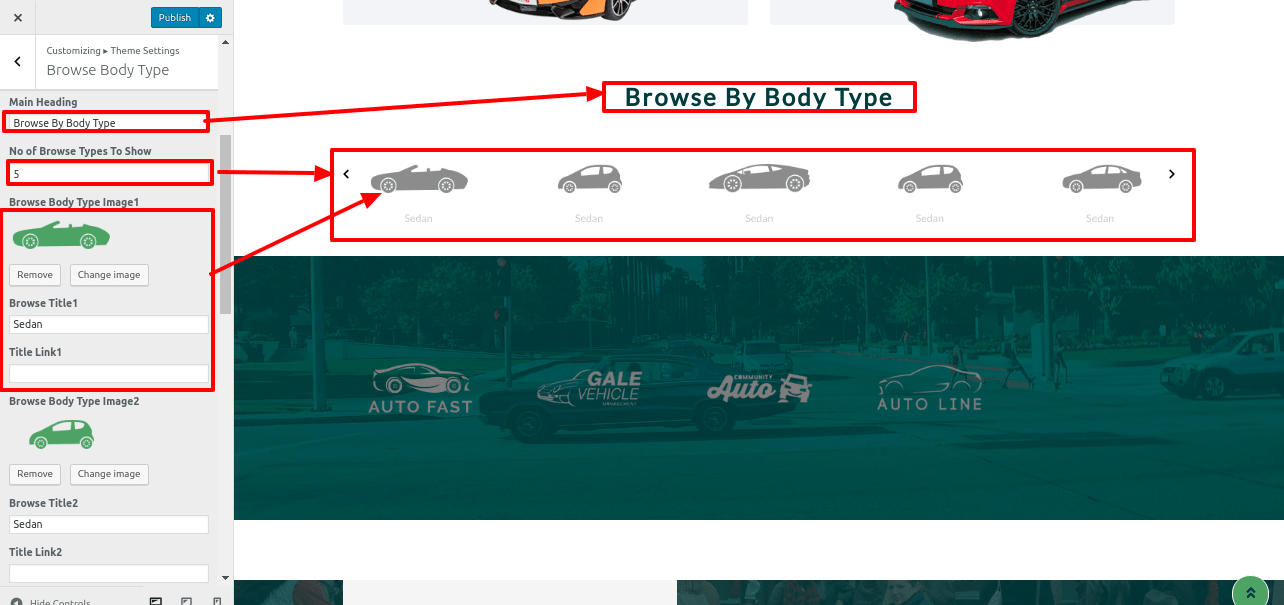 In order to proceed this section, Go to Appearance >> Customize >> Theme Settings >> About Cars.