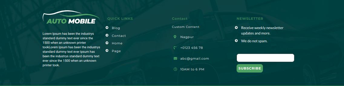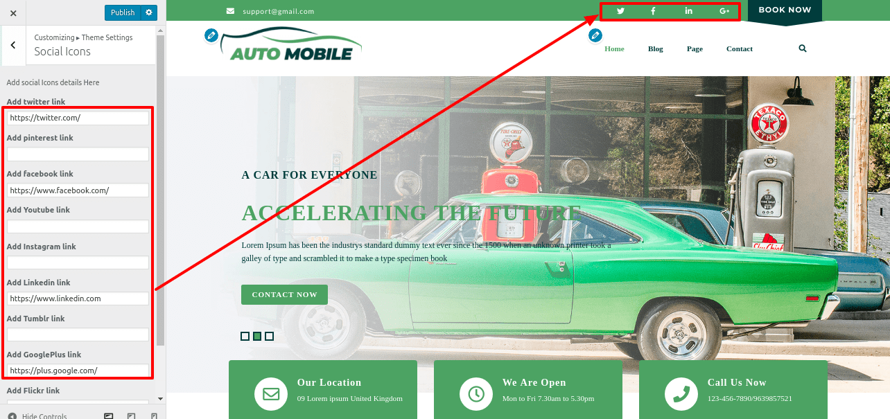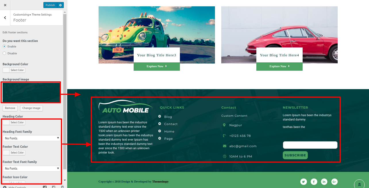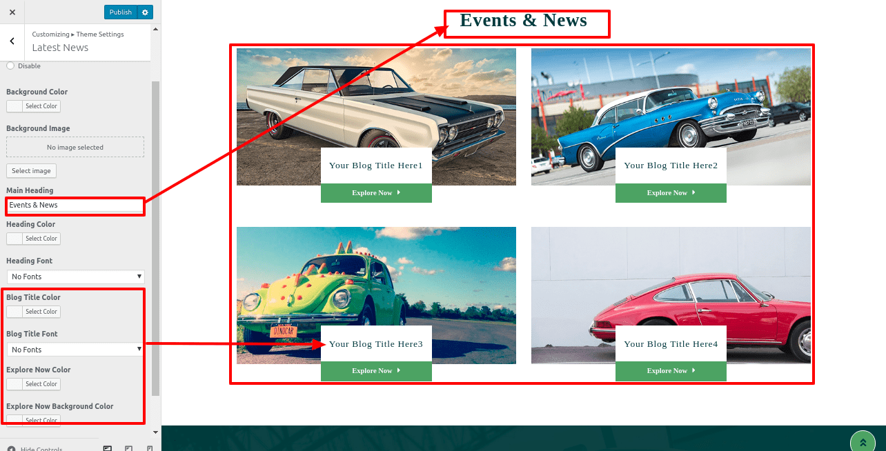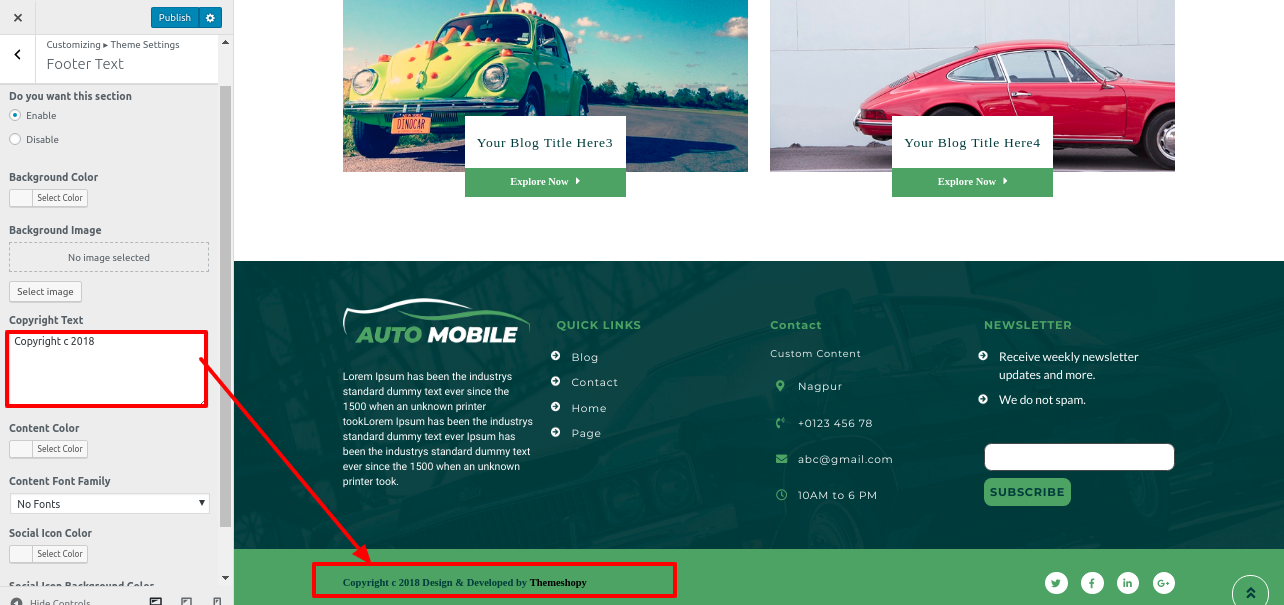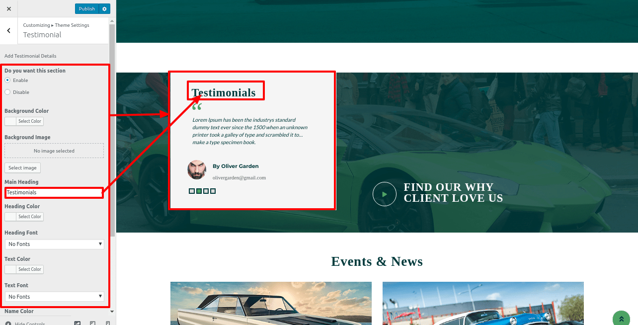 In order to proceed this section, Go to Appearance >> Customize >> Theme Settings >> About Cars.