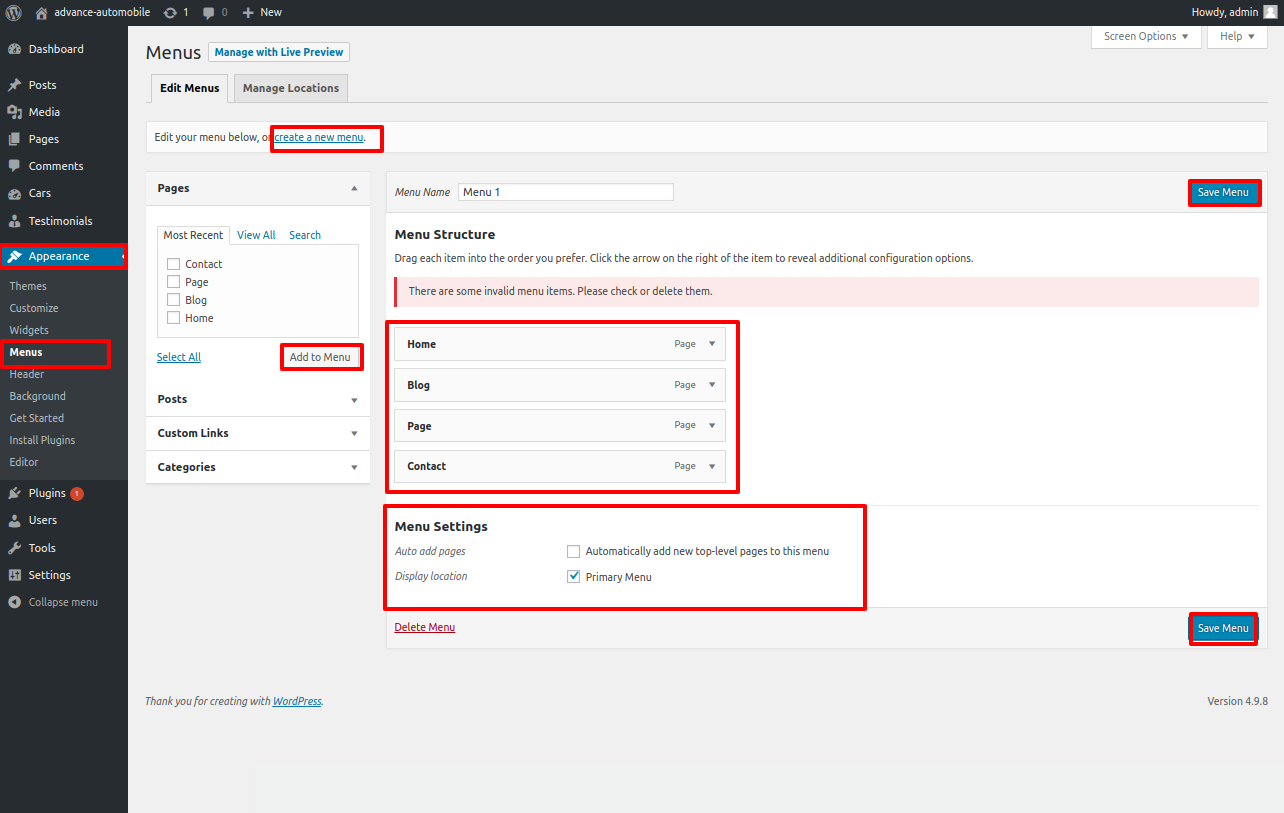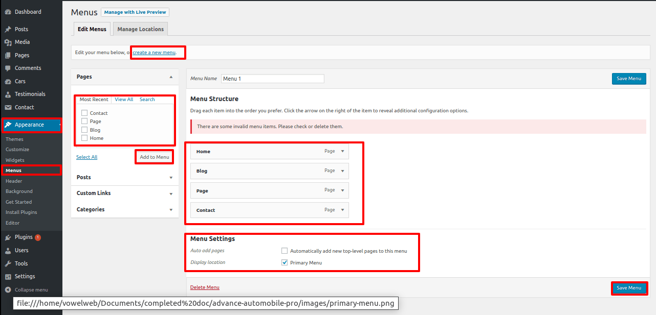 You must first activate the advance-automobile-pro Posttype Plugin (for more information refer to plugin section).