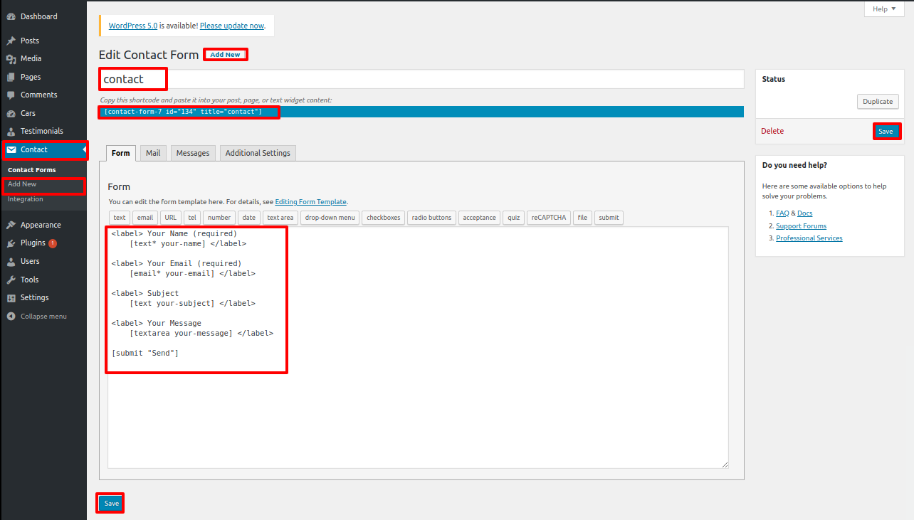 To get started, you must first install and activate the Contact Form7 Plugin.