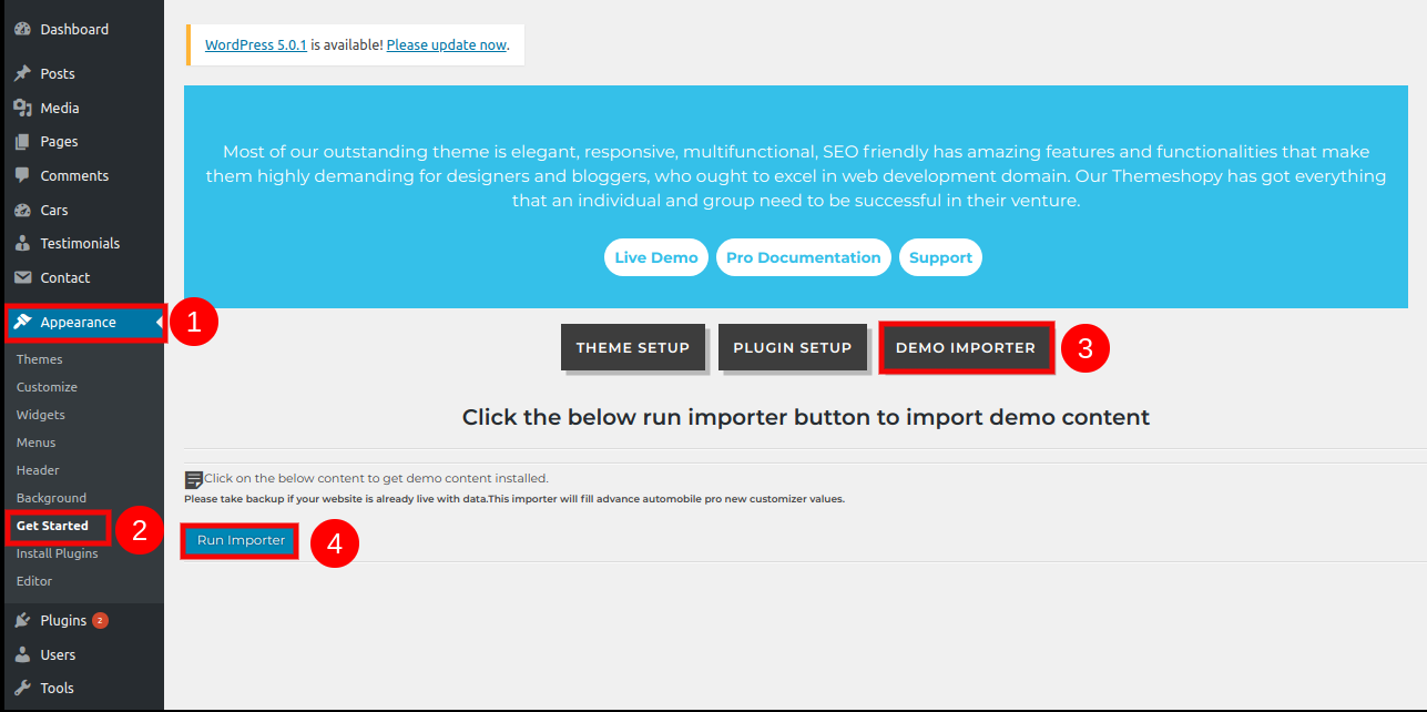 Before you can click "Run Importer," you must first install the advance-automobile-pro Posttype plugin.