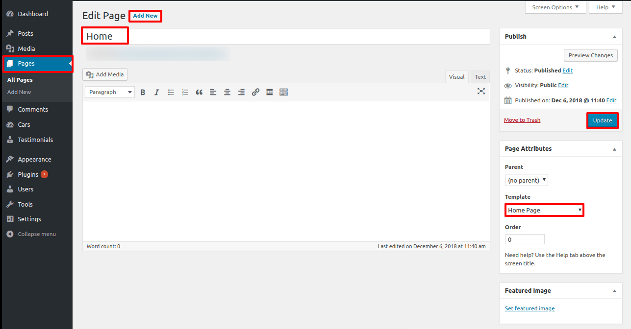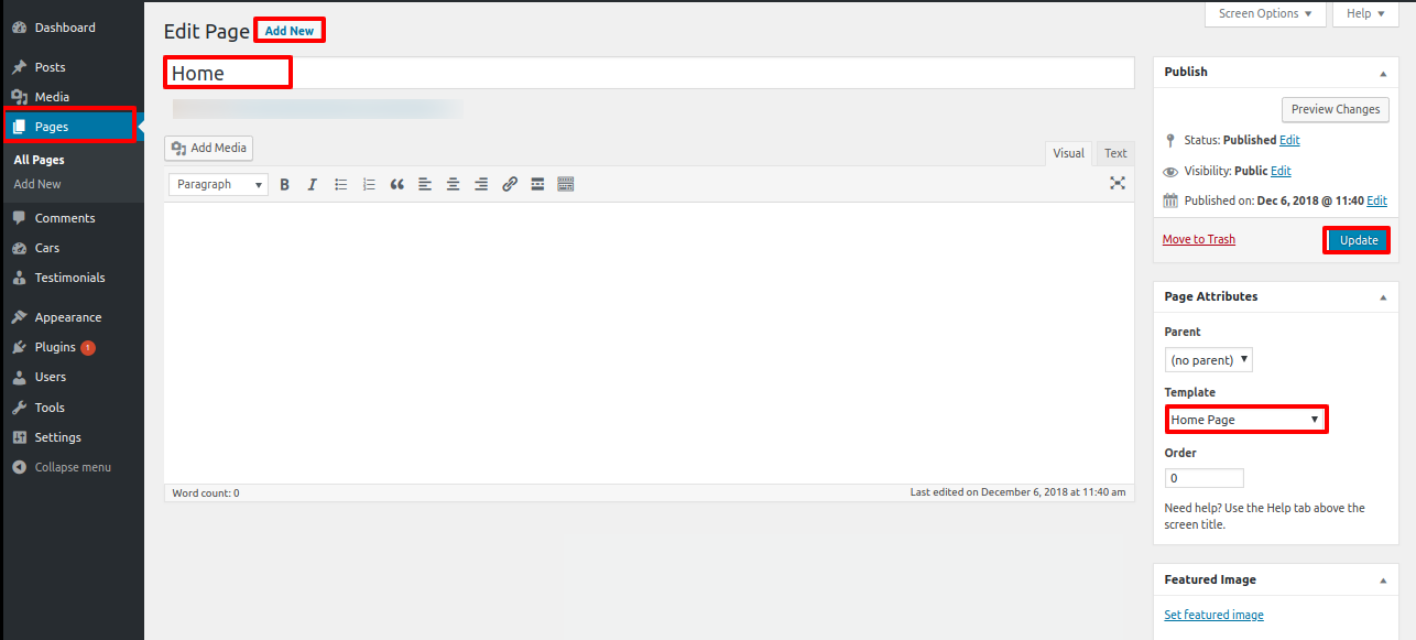 Create Page to set template for: Navigate to the Dashboard. >> Pages >>Add New.