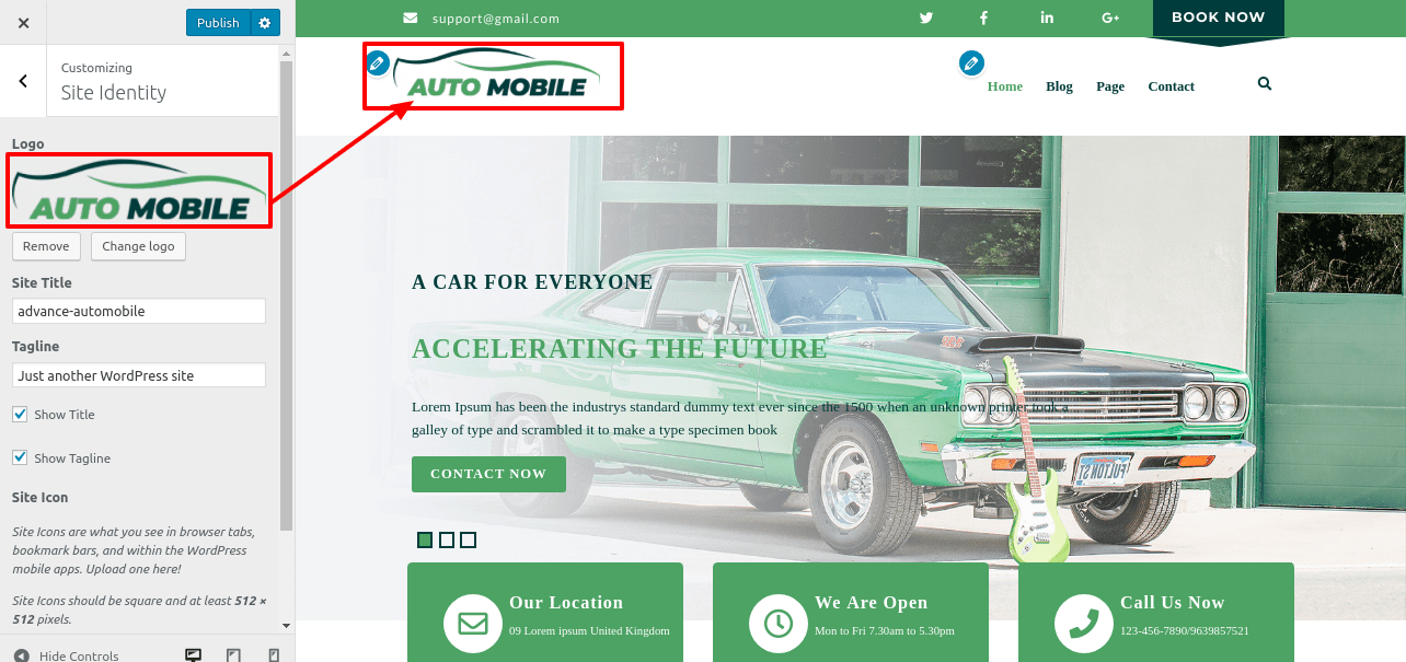 1. Go to Dashboard >> Appearance >> Customize >> Site identity.