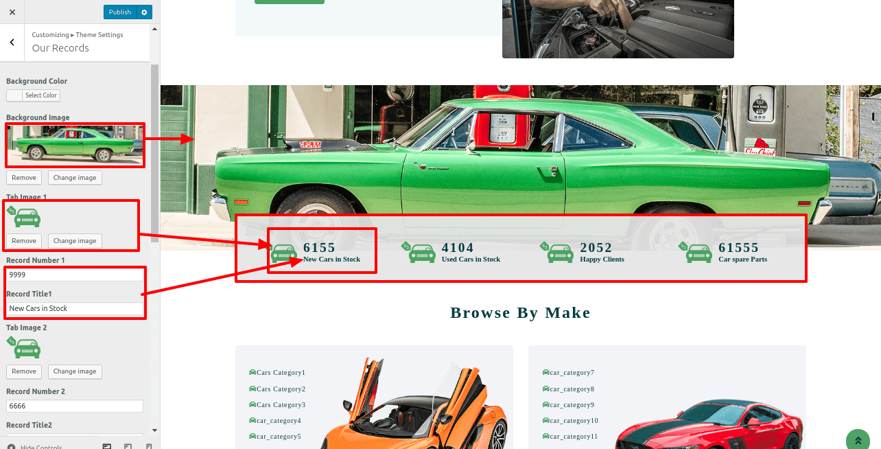 To continue with this Section, go to Appearance >> Customize >> Theme Settings >> Our Records Section.