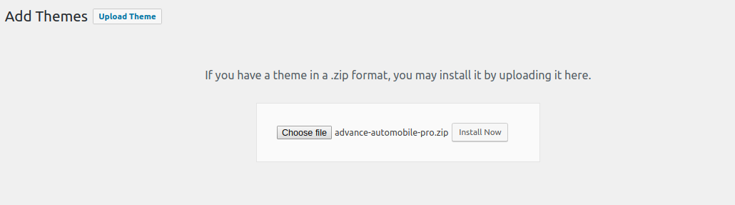 You will be prompted to select the zip file that you previously downloaded. Choose the file and press the Install Now button.