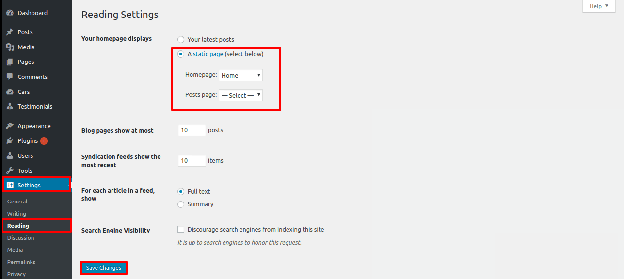 Set the front page: Go to Setting >> Reading >> Set the static front page display page to the home page.