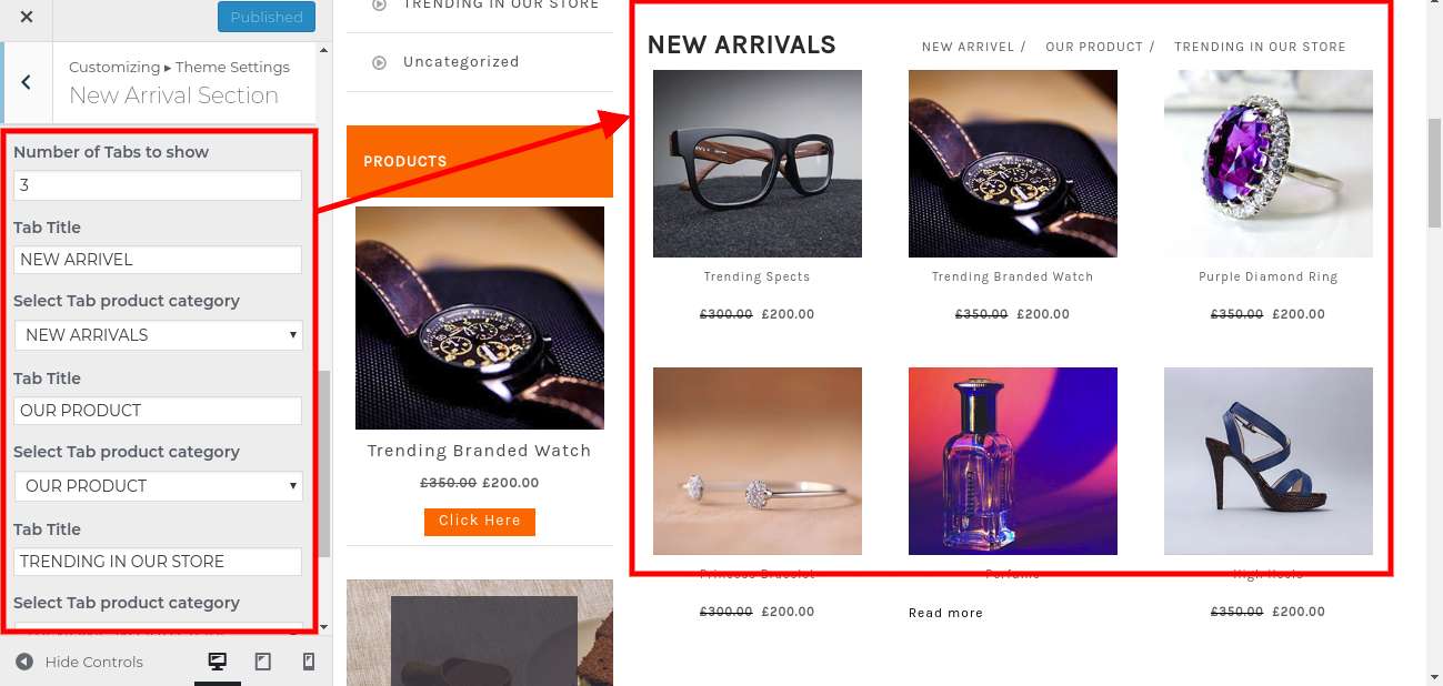 Go to Appearance >> Customize >> Theme Settings>> New Arrival Section.