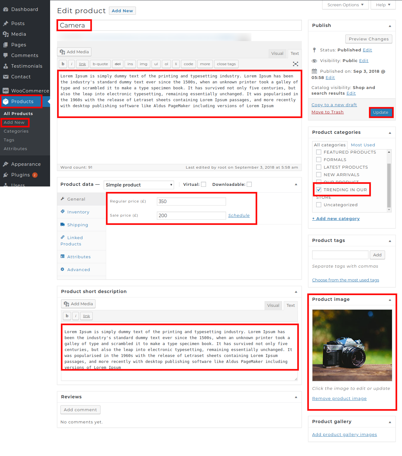 3. Go to Dashboard>>Products>>Add new.