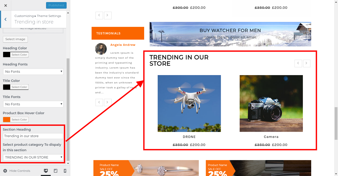 4. Go to Appearance >> Customize >> Theme Settings>> Trending in store .