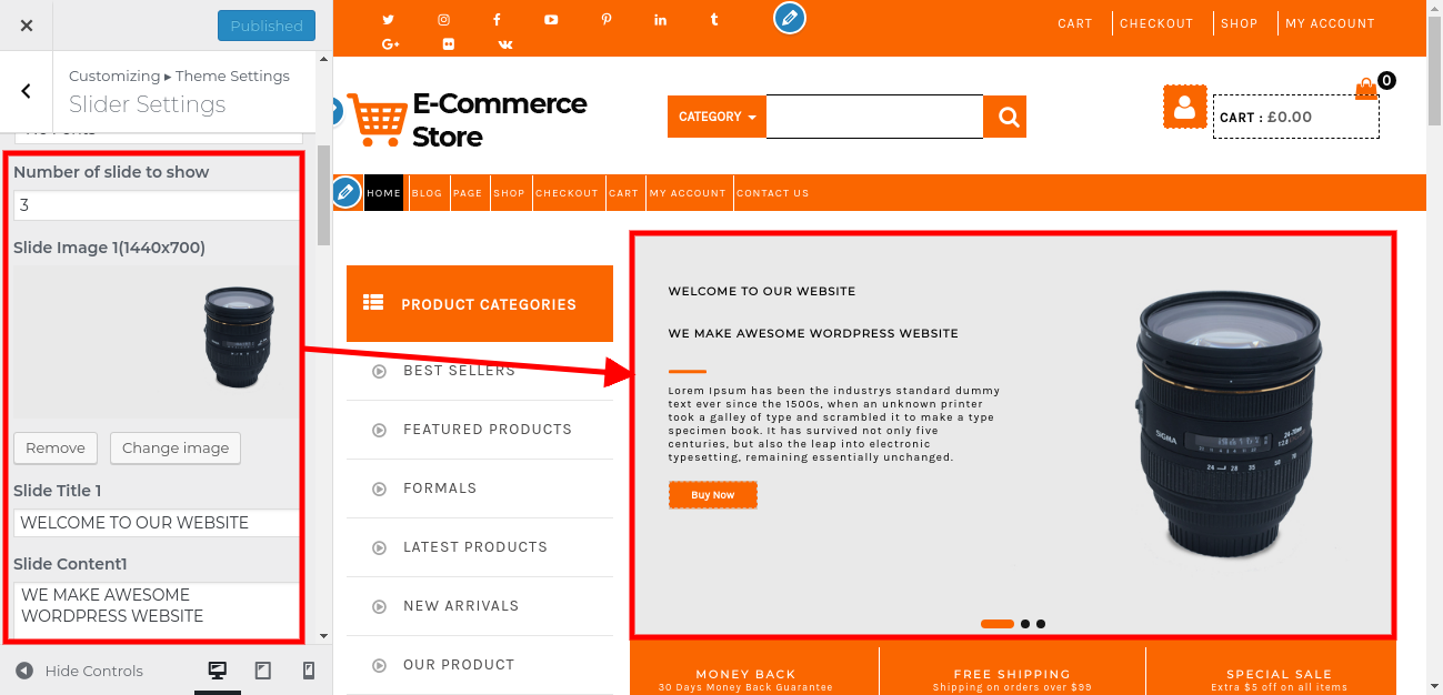 2. Go to Appearance >> Customize >> Theme Settings>> Slider Settings.