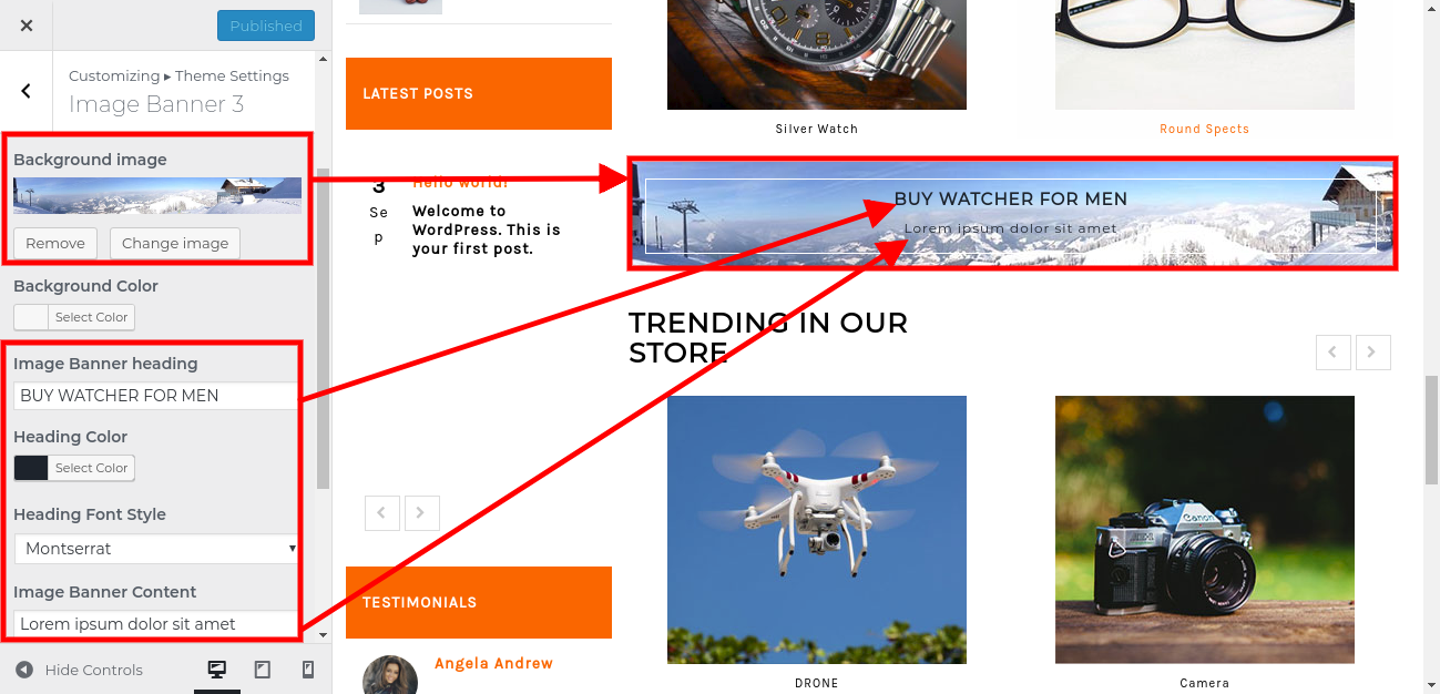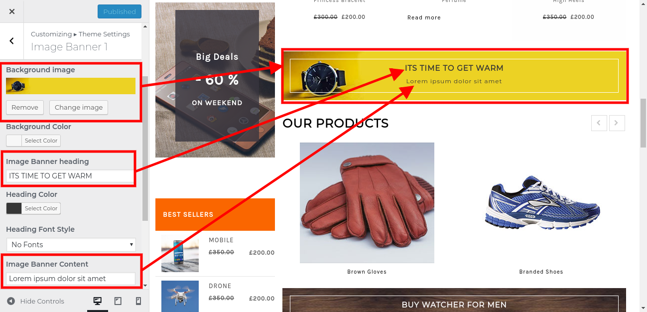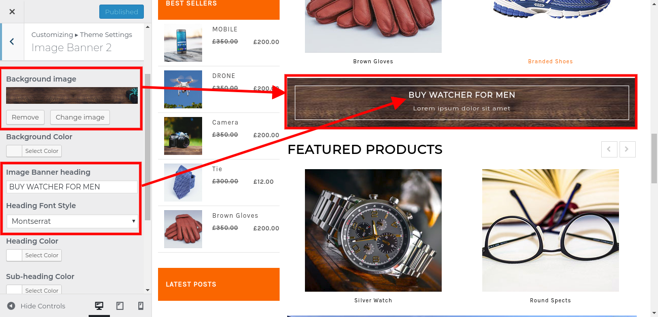 1. Go to Appearance >> Customize >> Theme Settings>> Image Banner 3.