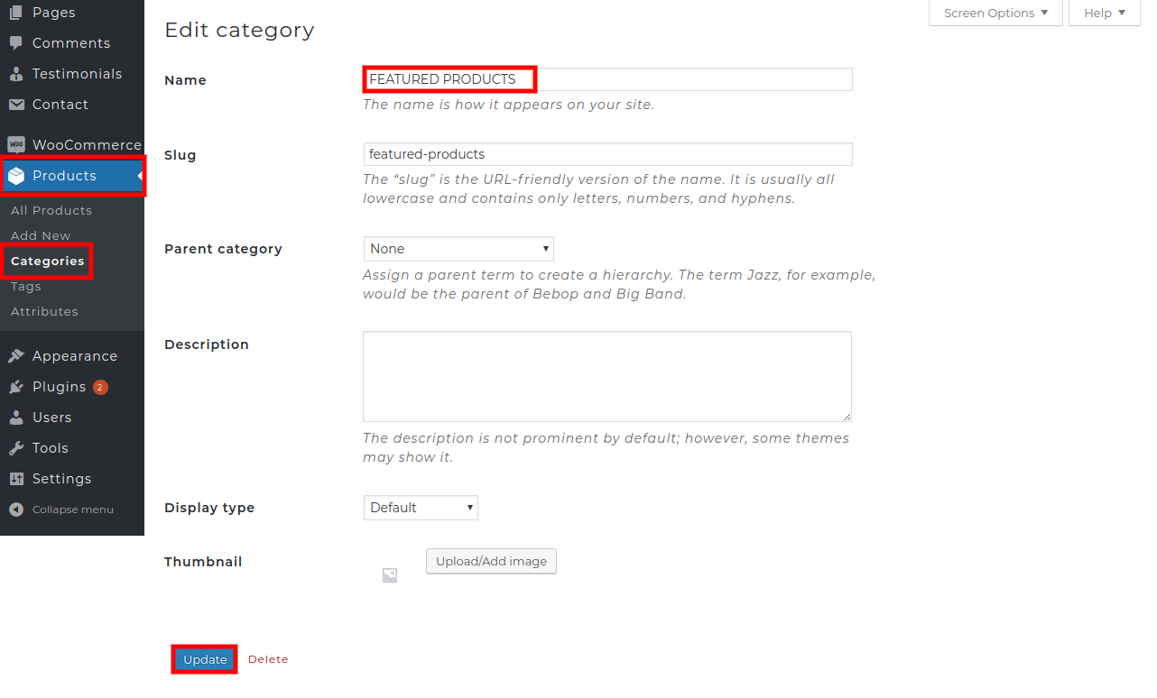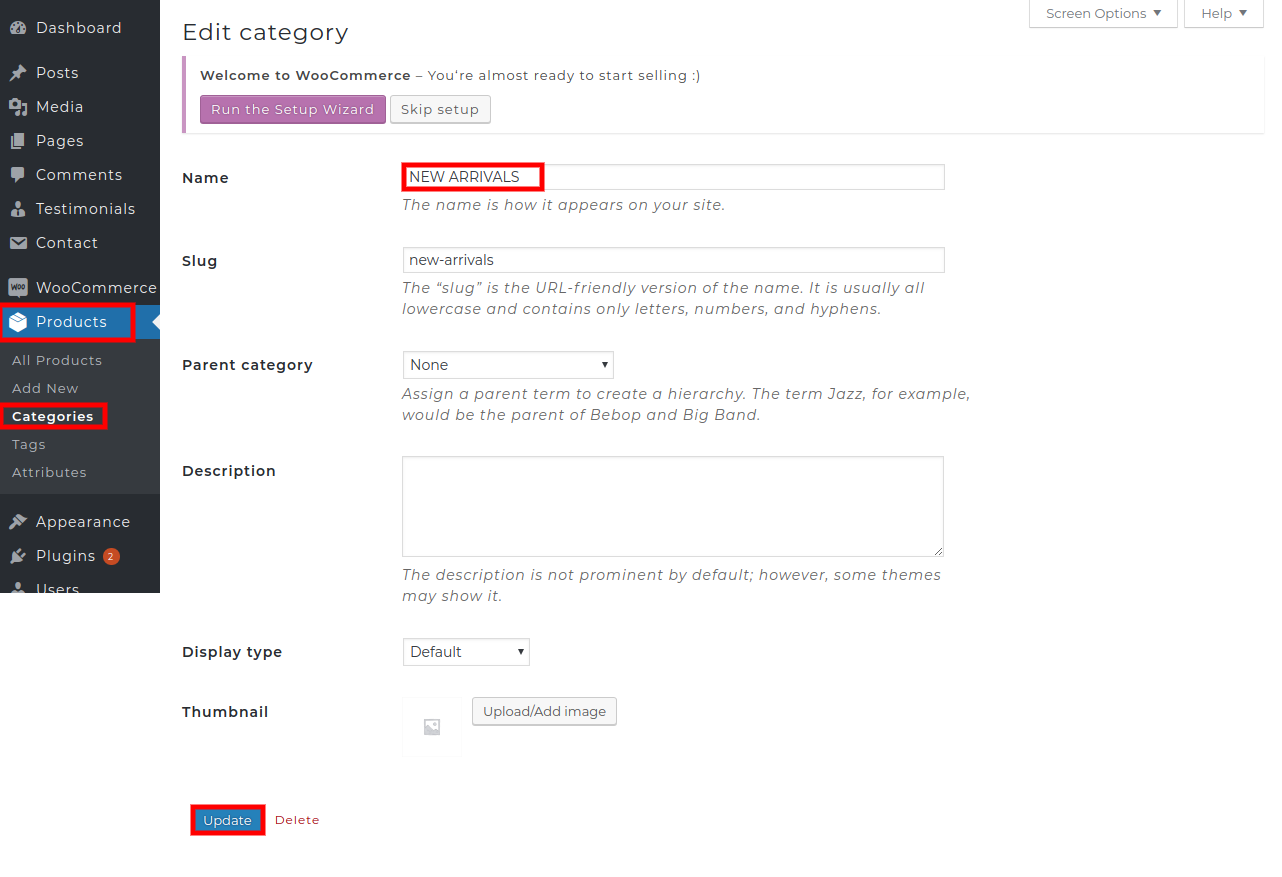 2. Create the category .