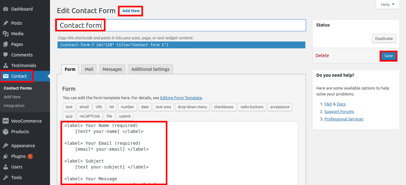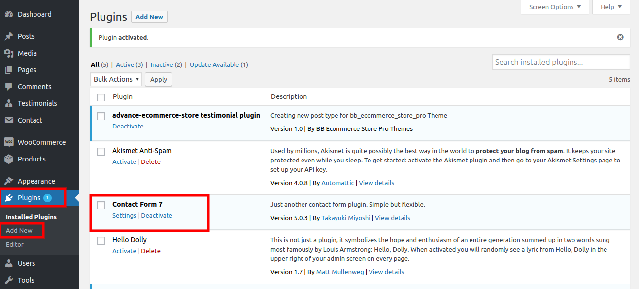 6. After installing Contact Form 7, you will see a contact form option on your dashboard.