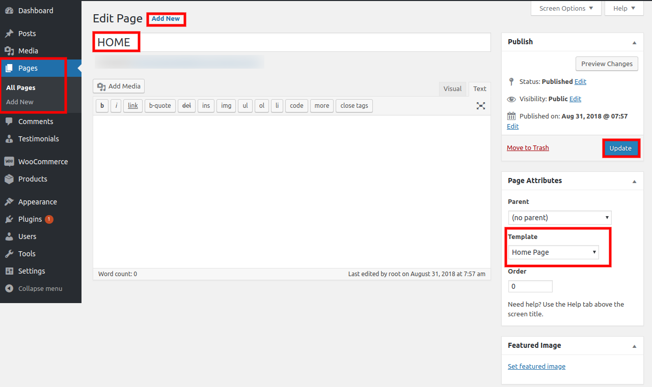 Setup Home Page Template