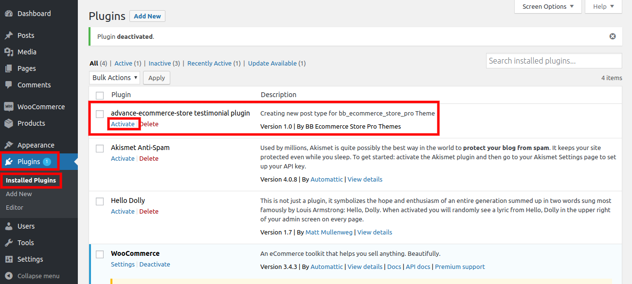 1.You must add and activate the advance advance-ecommerce-store-pro-posttype plugins in the Plugin section.
