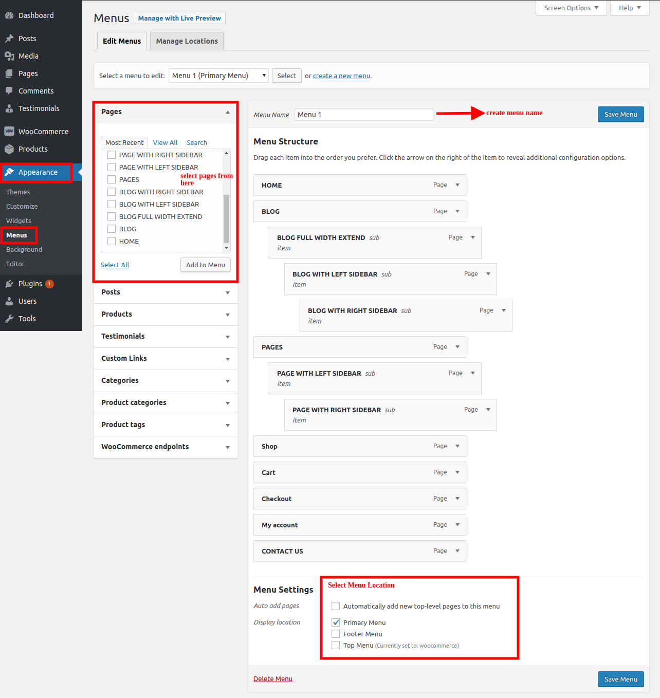 Go to >> Dashboard>> Appearance >> menu.