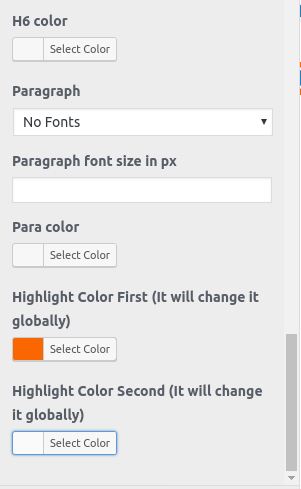 Depending on the number of options available in that section, each individual section has the option to set the color palette for Headings,Title/Text,Paragraph,Button Text, and Button Background.