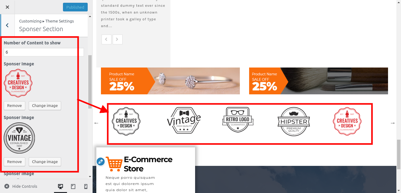Go to Appearance >> Customize >> Sponser Section.