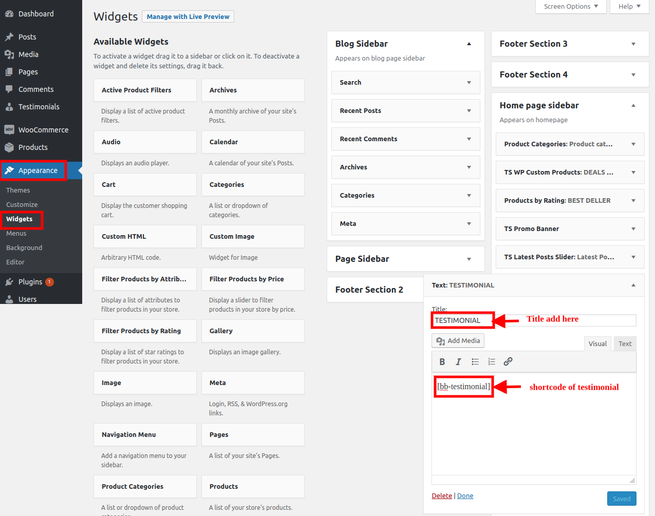 1. Go To >> Dashboard >> Appearance >> widgets.
