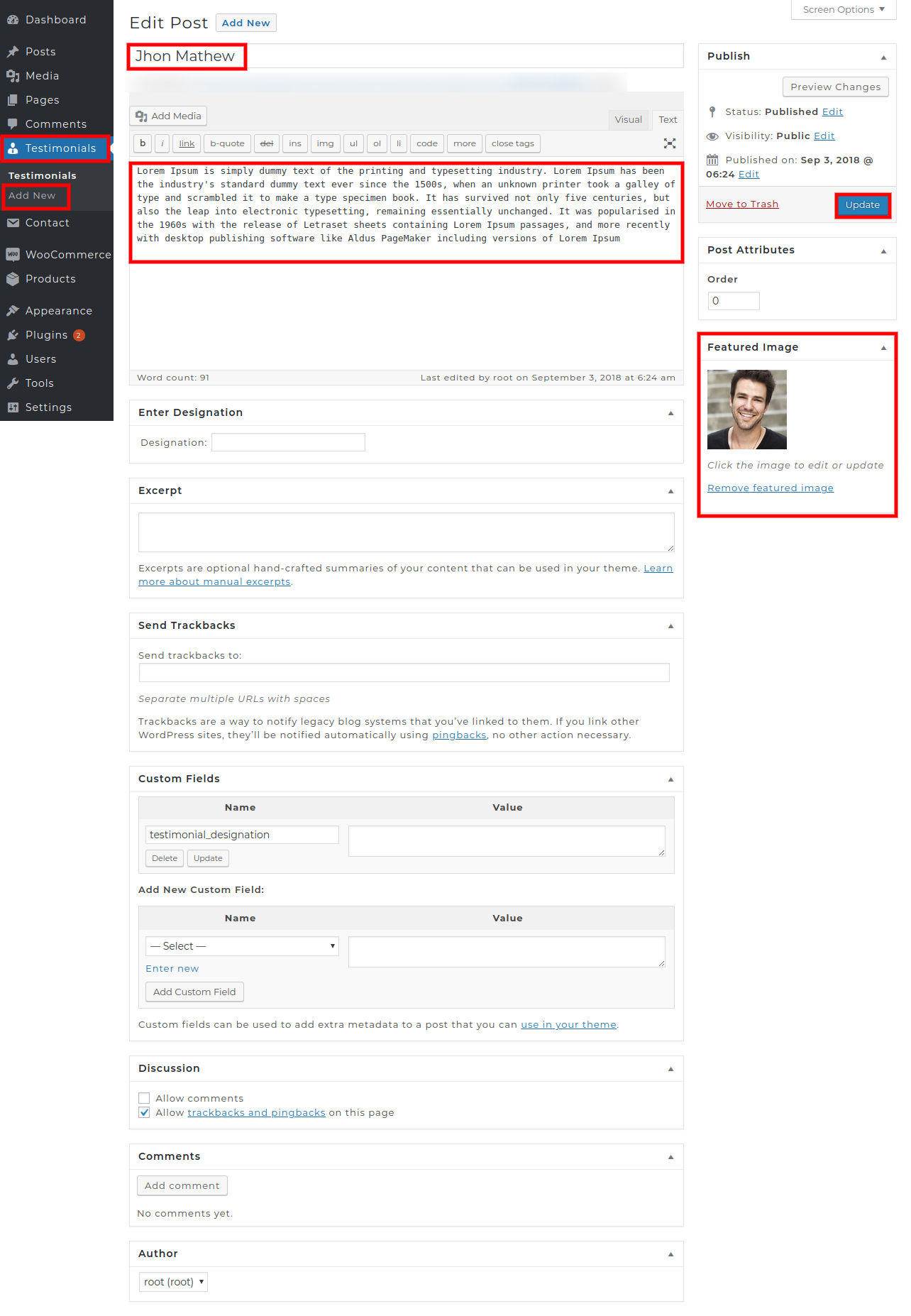 Go to >>Dashboard>>Testimonials>>Add new