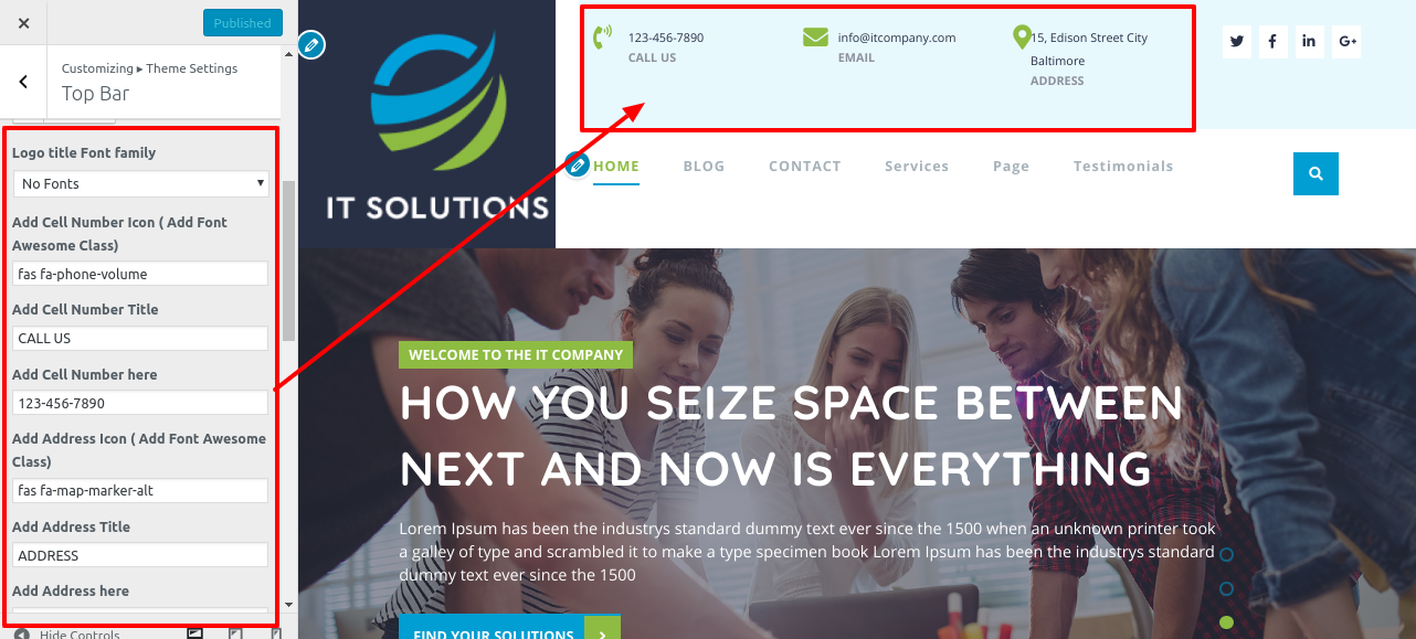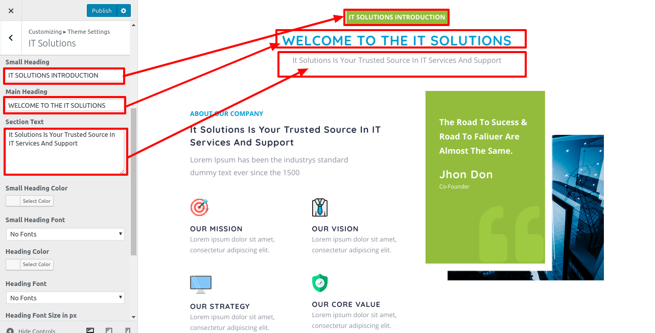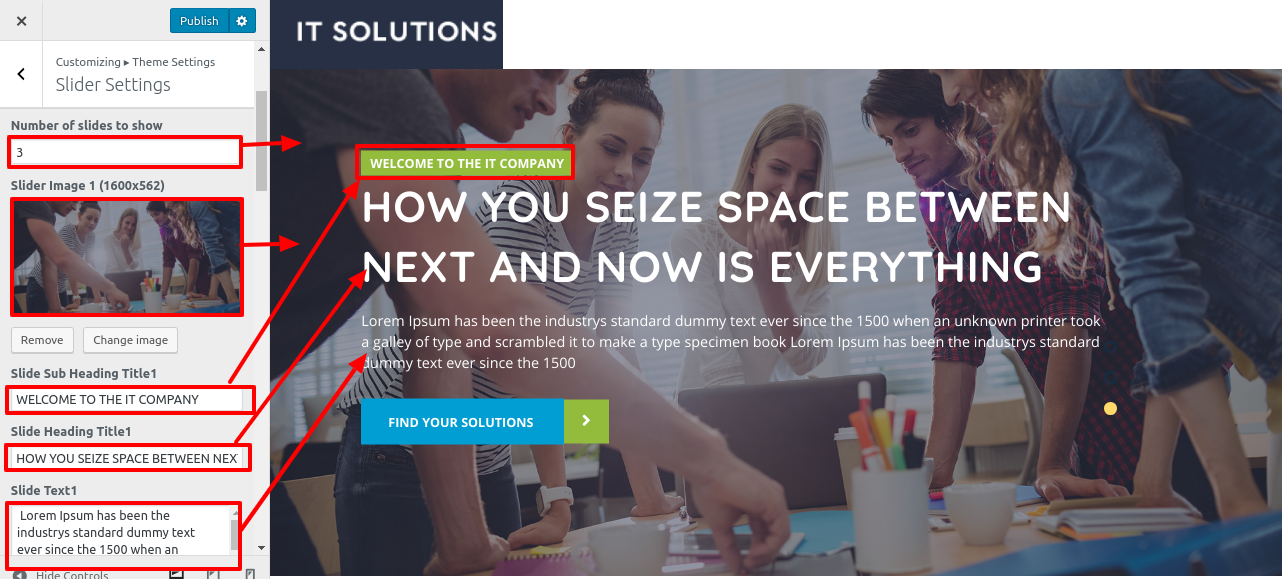 Go To Appearance >> Customize >> Theme Settings >> Our IT Solutions.