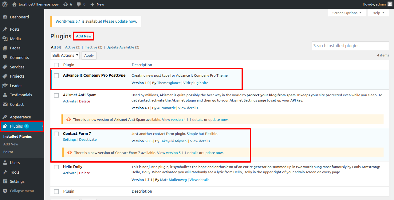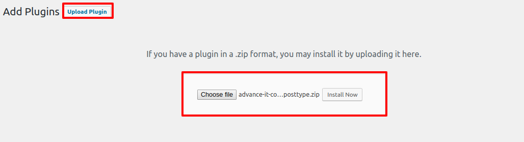 To begin, download the advance-it-company-pro-posttype plugin as a zip file from the source. Then, go to WordPress admin and select Plugin >> Add new.