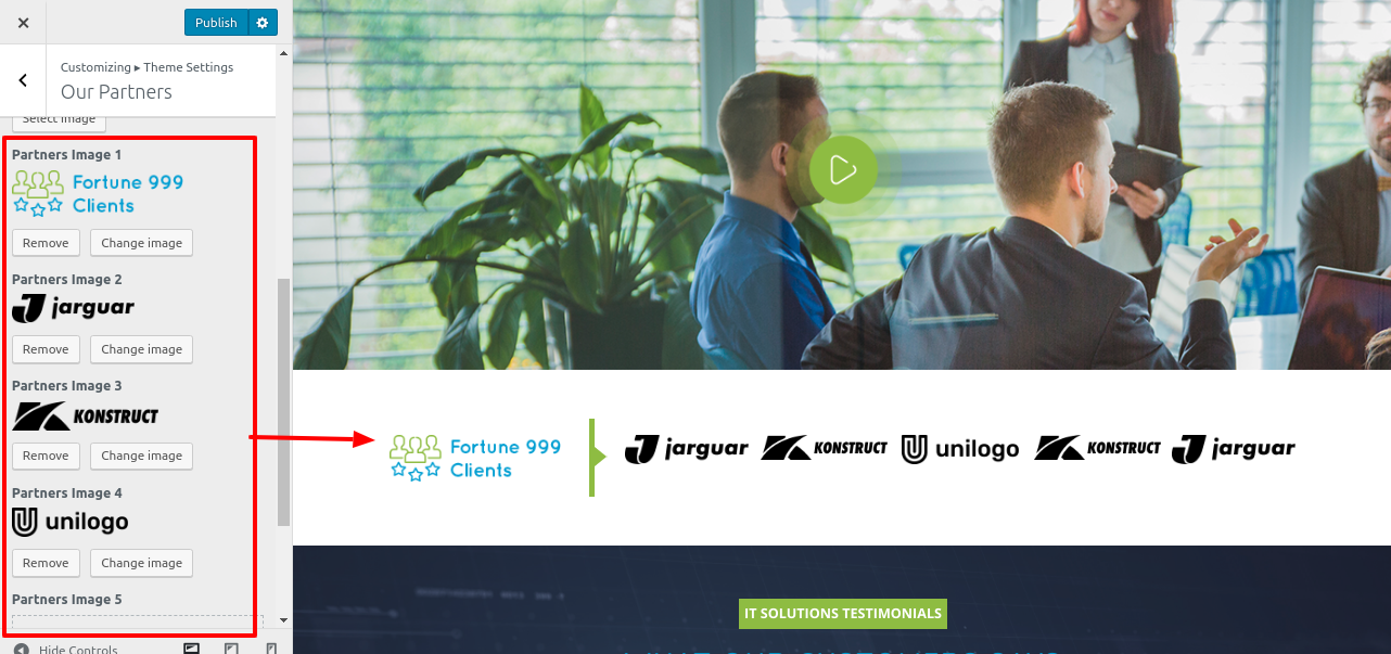 Go to Appearance >> Customize >> Theme Settings >> Our Partners.