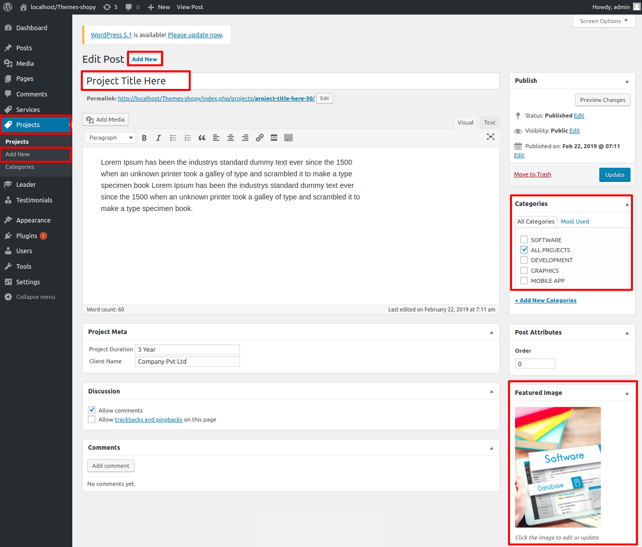 1. Go to Dashboard >> Projects >> Add New Categories.