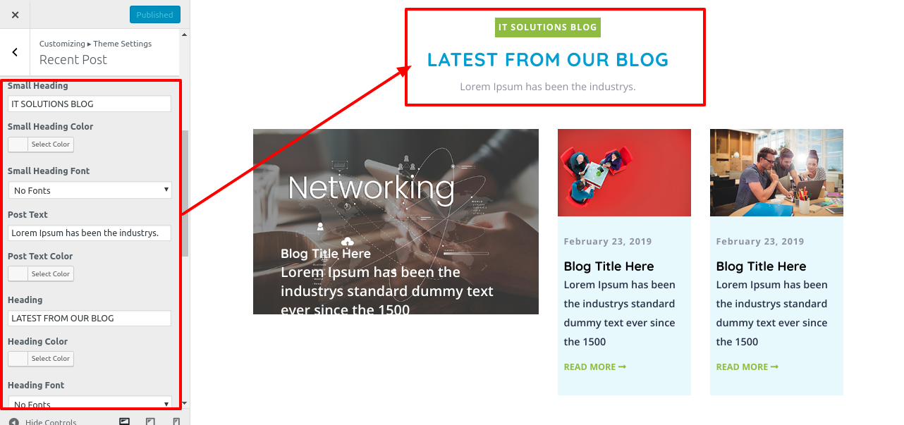 Go to Appearance >> Customize >> Theme Settings >> Recent Post.