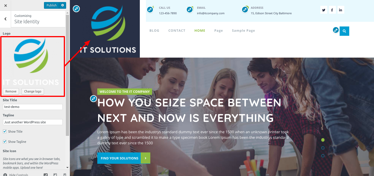 1. Go to Dashboard >> Appearance >> Customize >> Site identity.