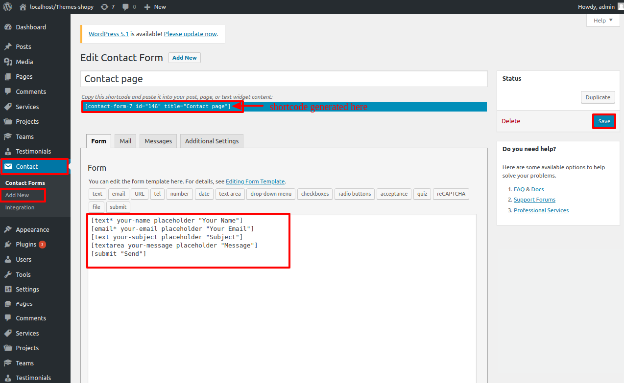 To get started, you must first install and activate the Contact Form7 Plugin.