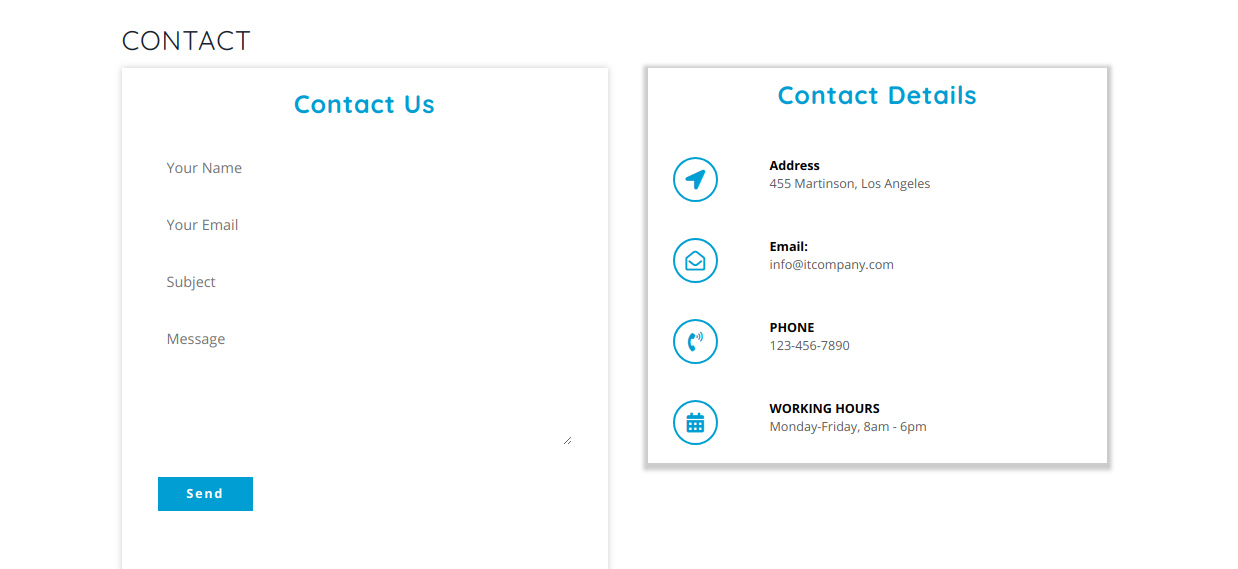 Blog (Left sidebar) (the default Contact template with left sidebar).