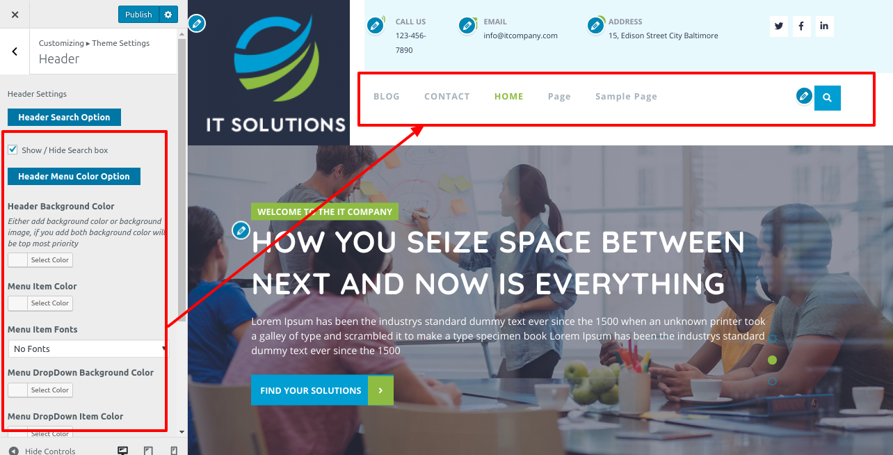 2. Go to Appearance >> Customize >> Theme Settings >> Header.