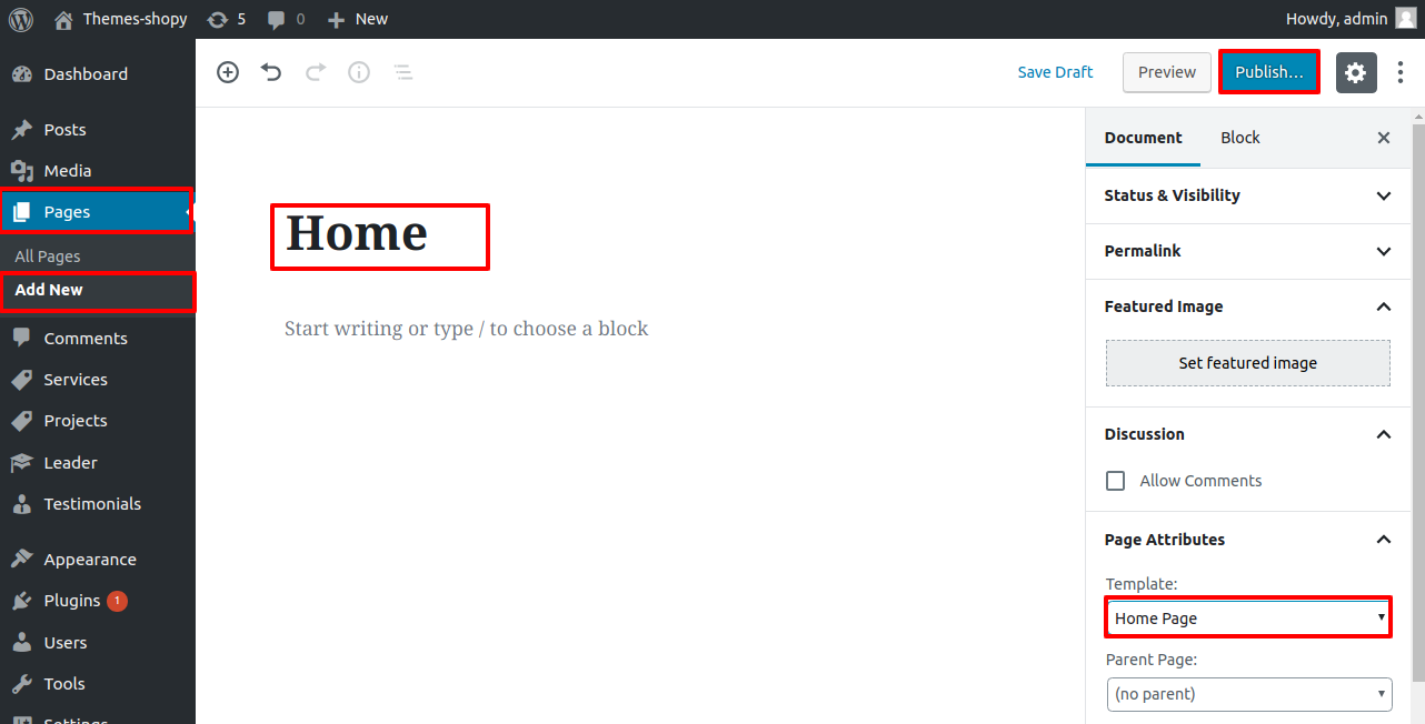 Create Page to set template: Go to Dashboard >> Pages >> Add New Page.