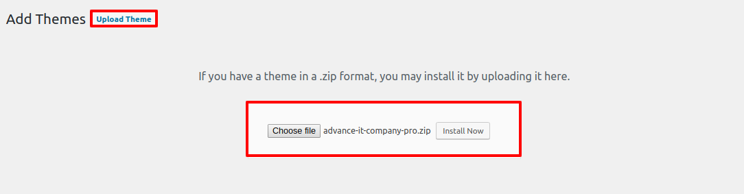 YYou will be asked to select the zip file you downloaded earlier. Choose the file and press the Install Now button.