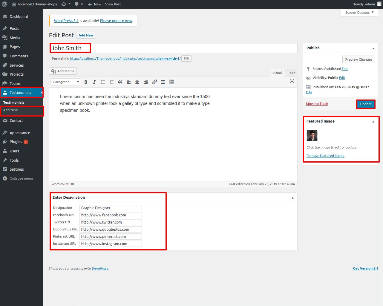 Go to Appearance >> Customize >> Theme Settings >> Testimonial.