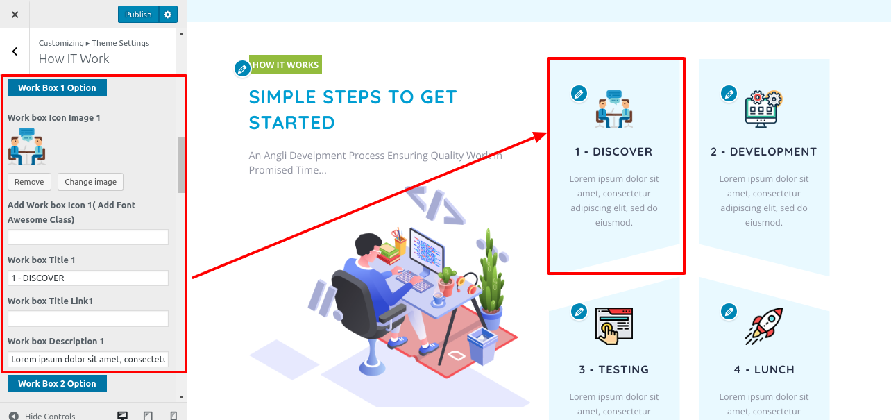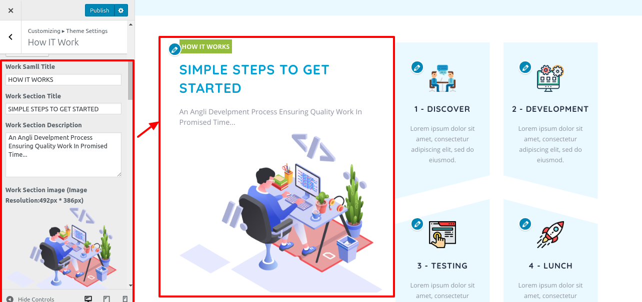 2. Go To Appearance >> Customize >> Theme Settings >> How IT Work Strategy Section.