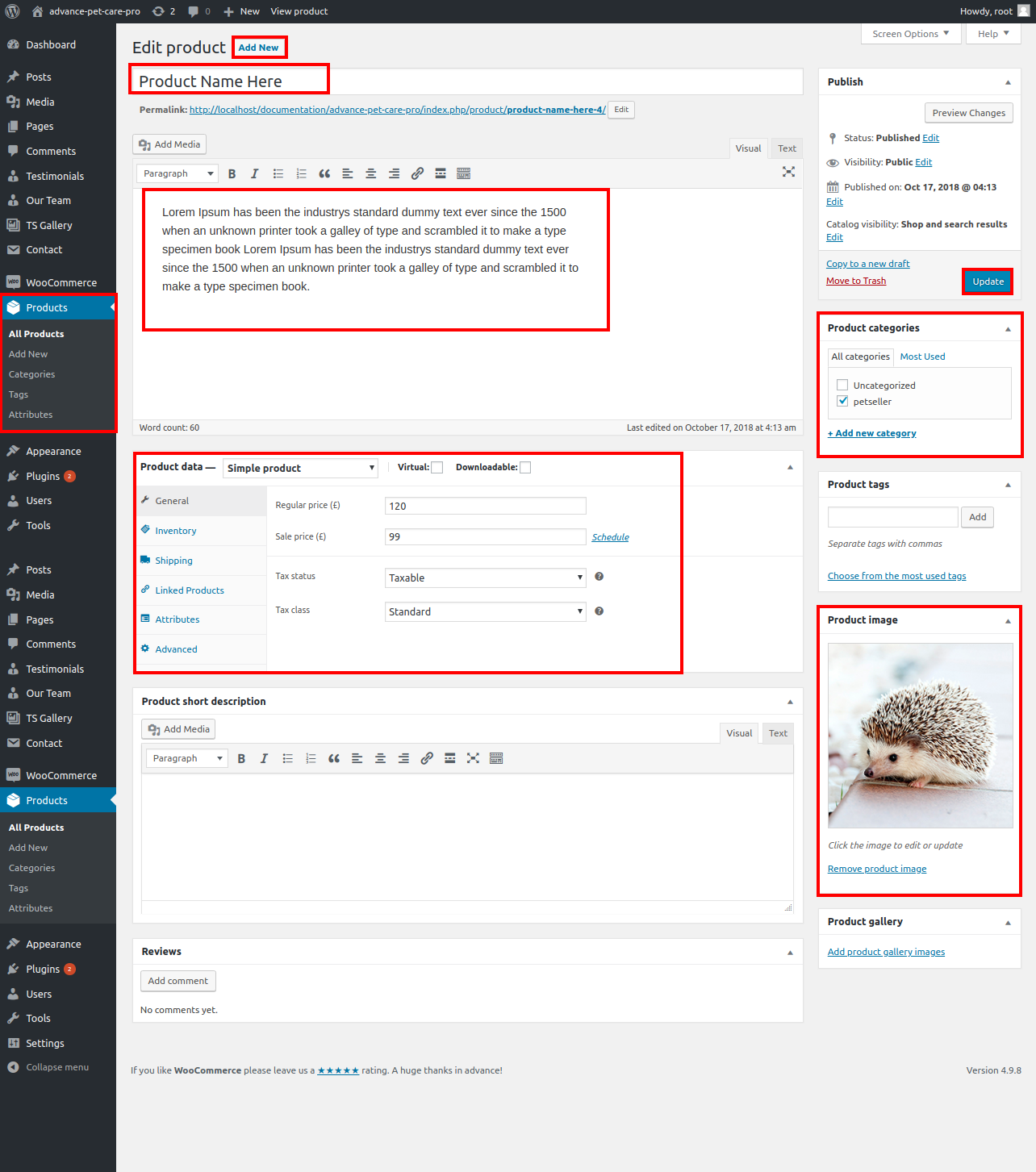 3. Go to Dashboard>>Products>>Add new.