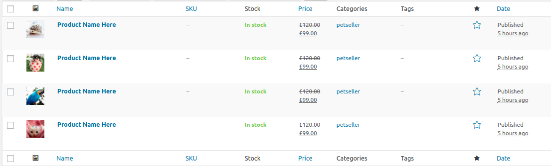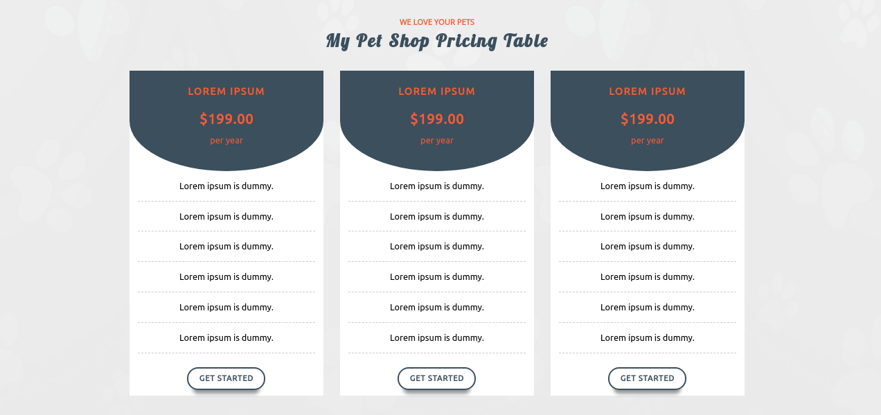 2. The section of your Pet Shop Pricing Table will then look like this.
