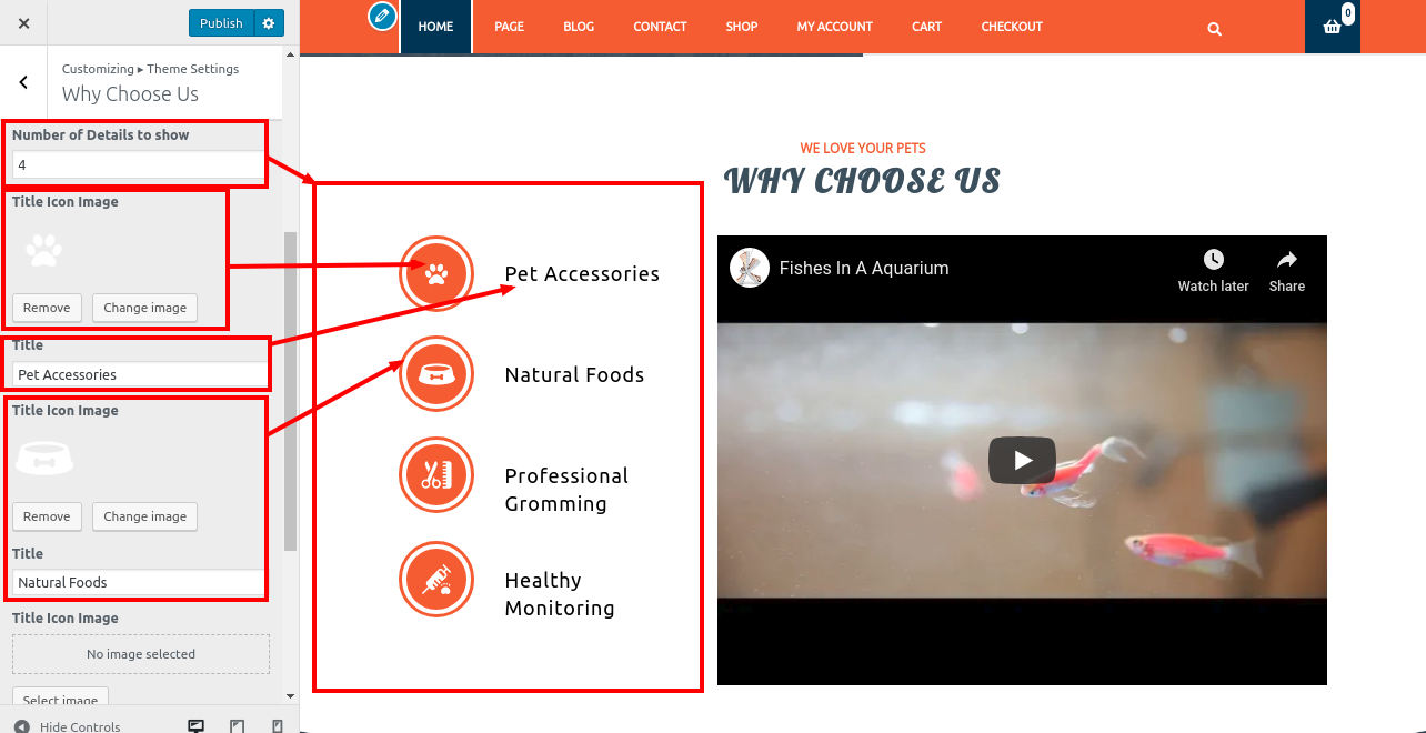 1. Go to Appearance >> Customize >> Theme Settings>> Why Choose Us.