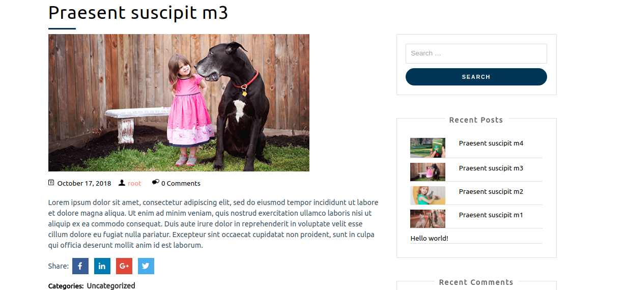 Blog with right sidebar (the default page template with a right sidebar position).