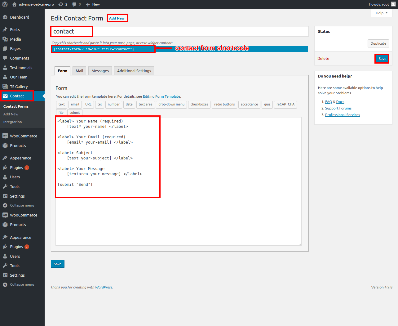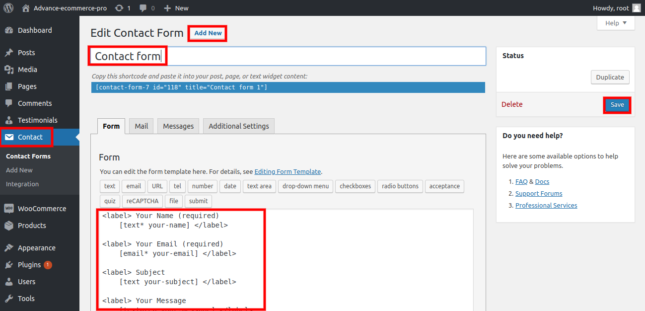 6. After installing Contact Form 7, you will see a contact form option on your dashboard.