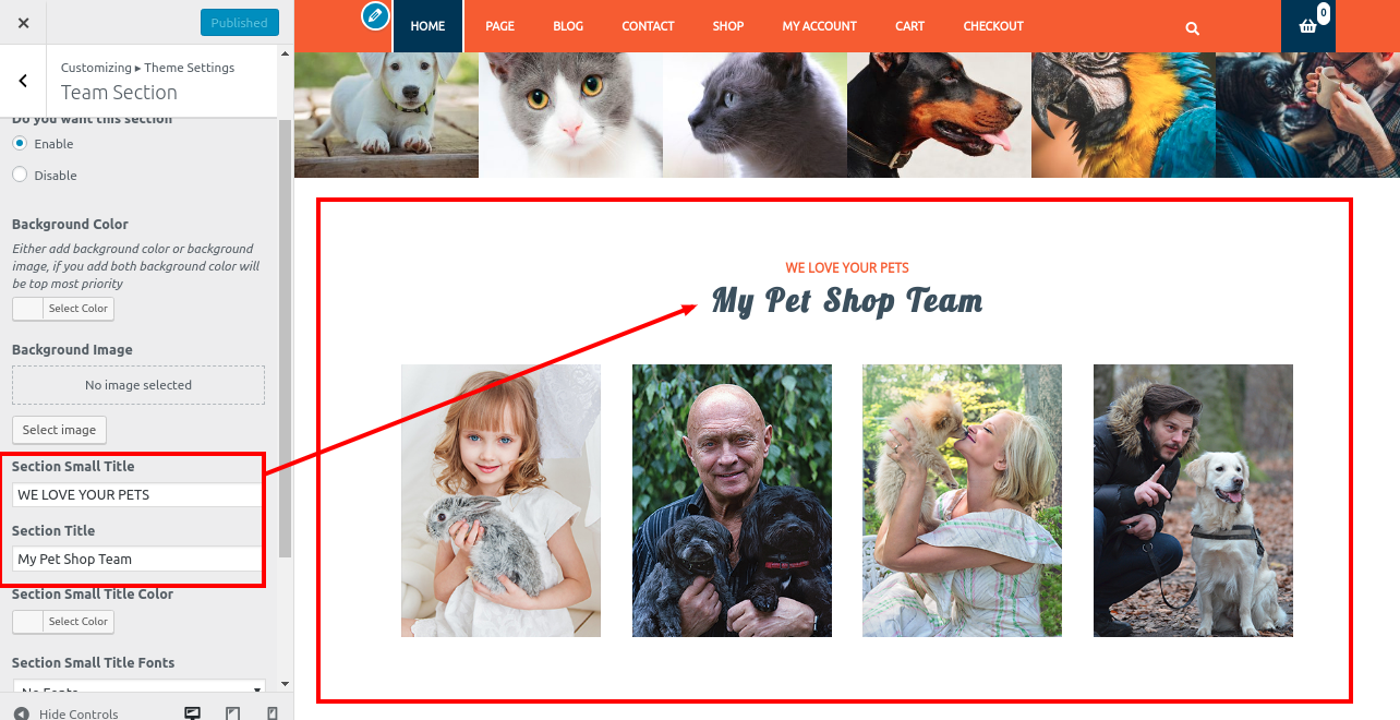 To configure the Team Section, follow the steps below.