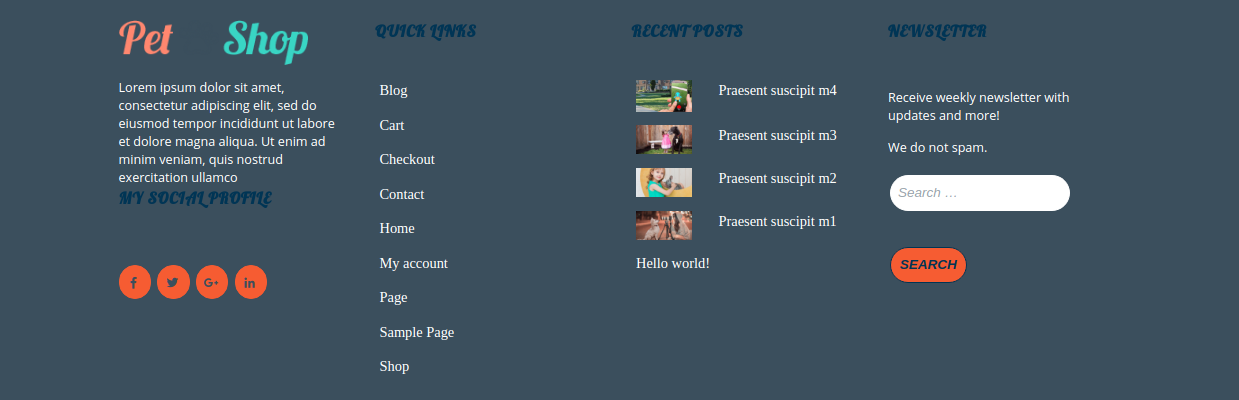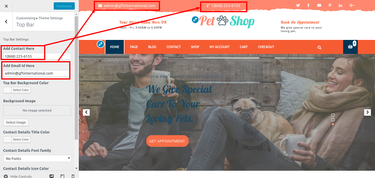 2. Go to Appearance >> Customize >> Theme Settings>> Pet Shop News Feed .