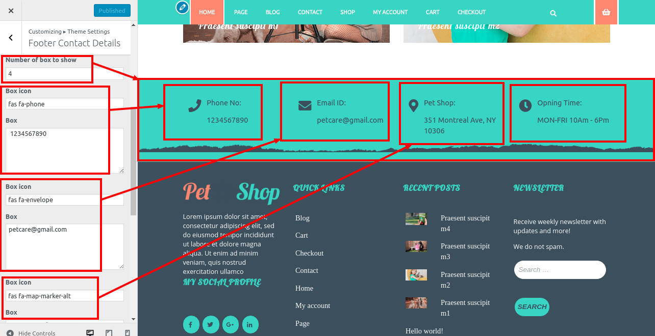 Setup Footer Contact Details Section