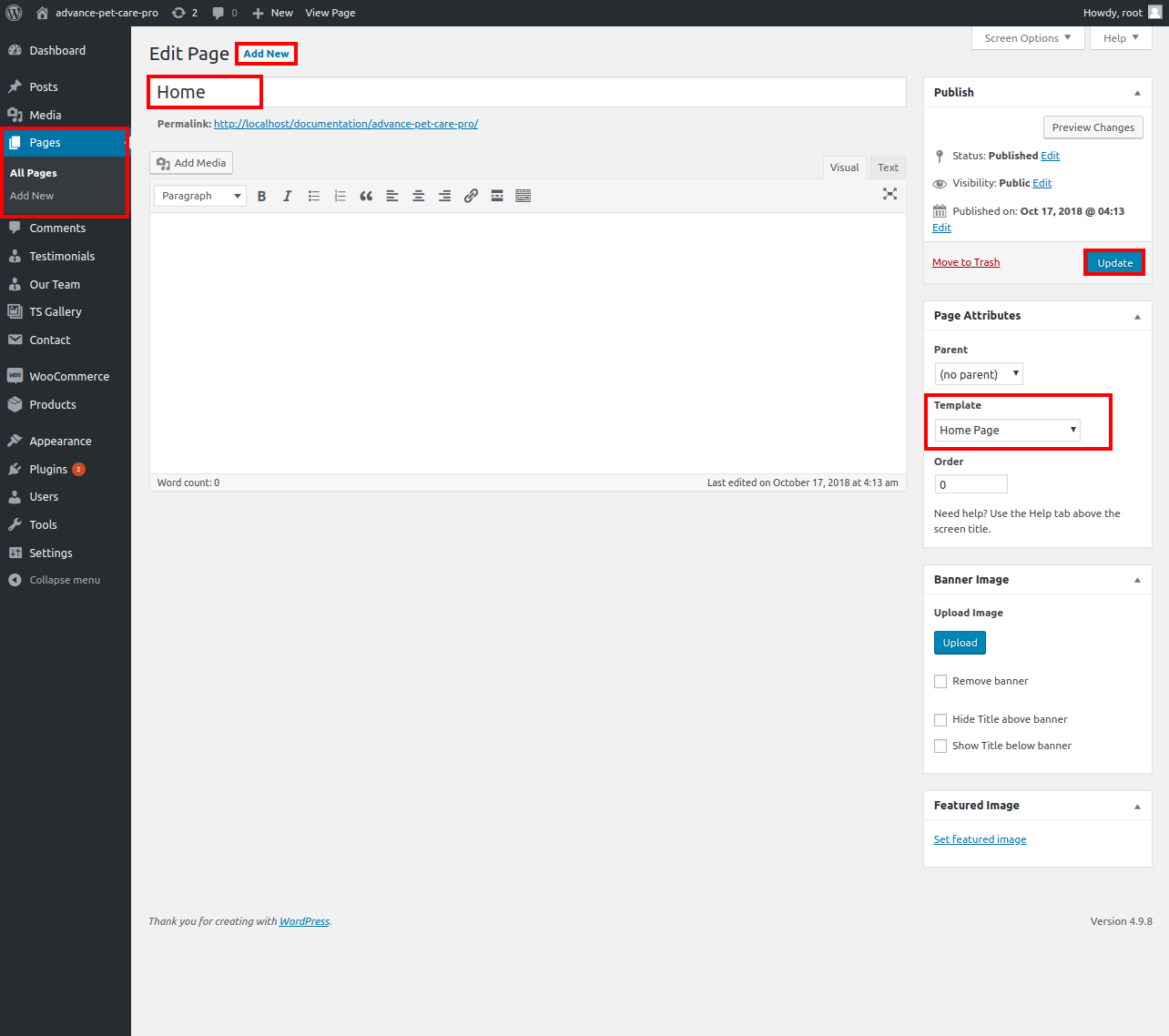 Setup Home Page Template