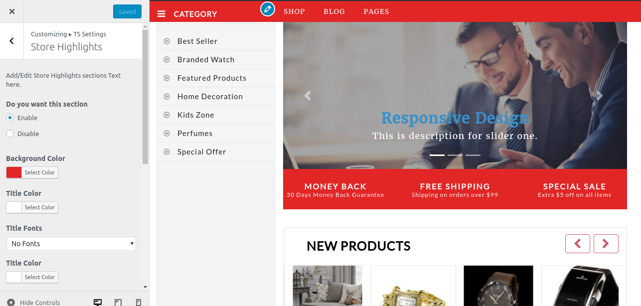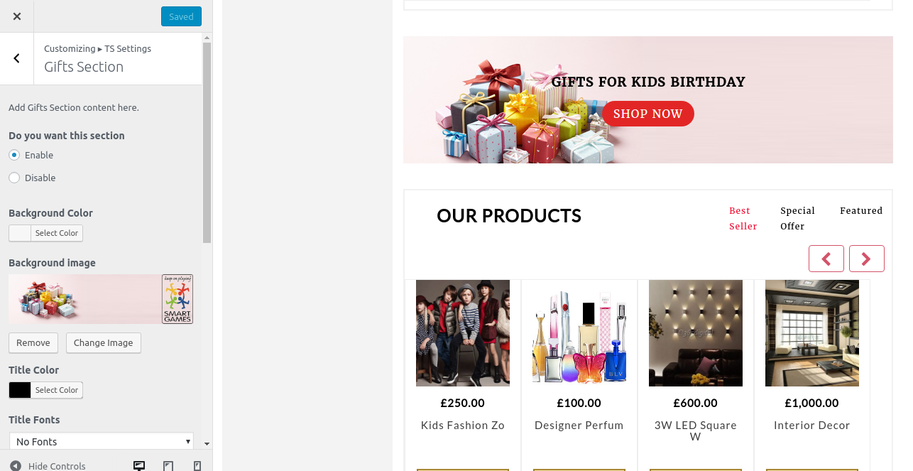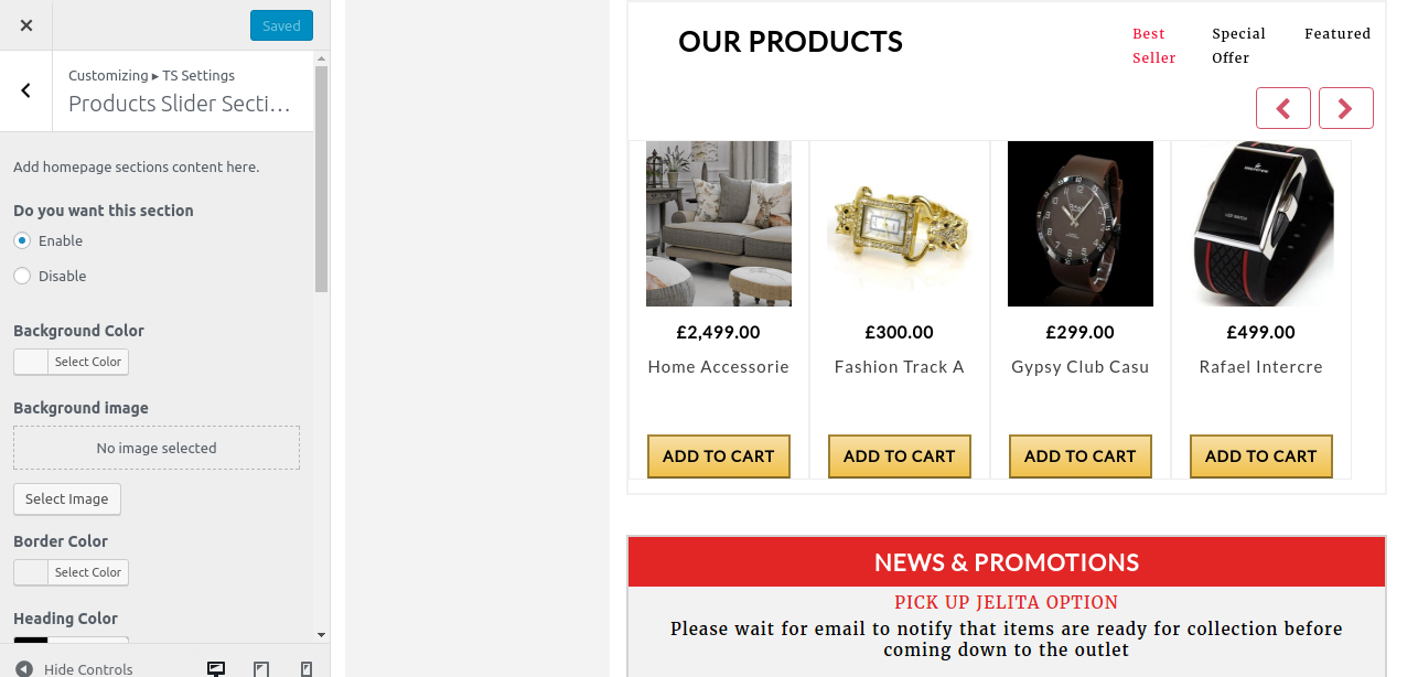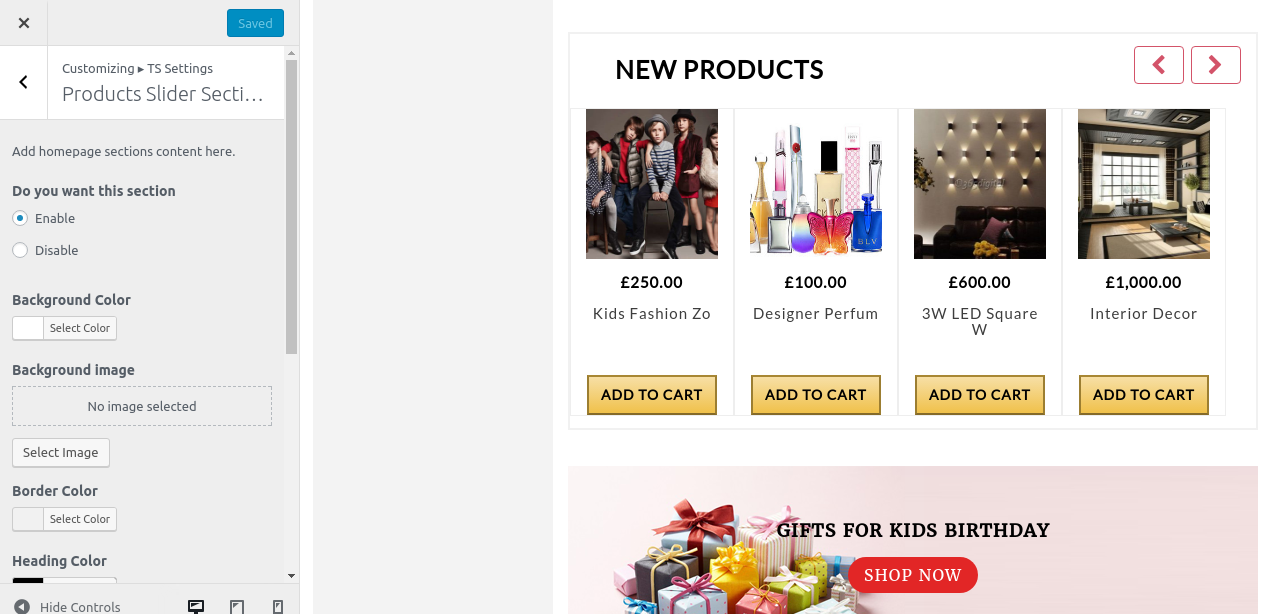 Go to Appearance >> Customize >> TS Settings>> Products Slider Section 2.