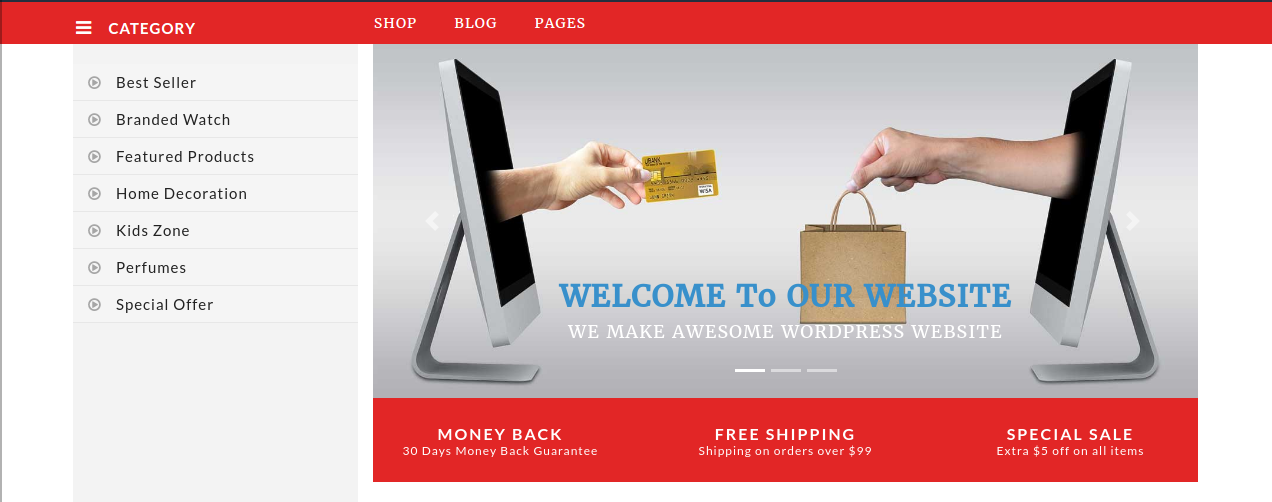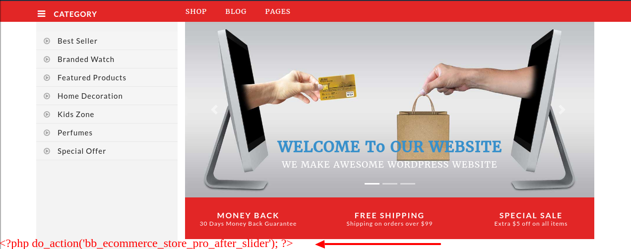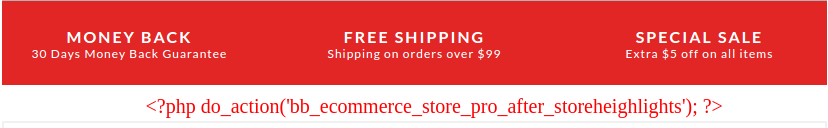 You can customise the titles and descriptions for the three boxes labelled "MONEY BACK," "FREE SHIPPING," and "SPECIAL SALE" in this section.